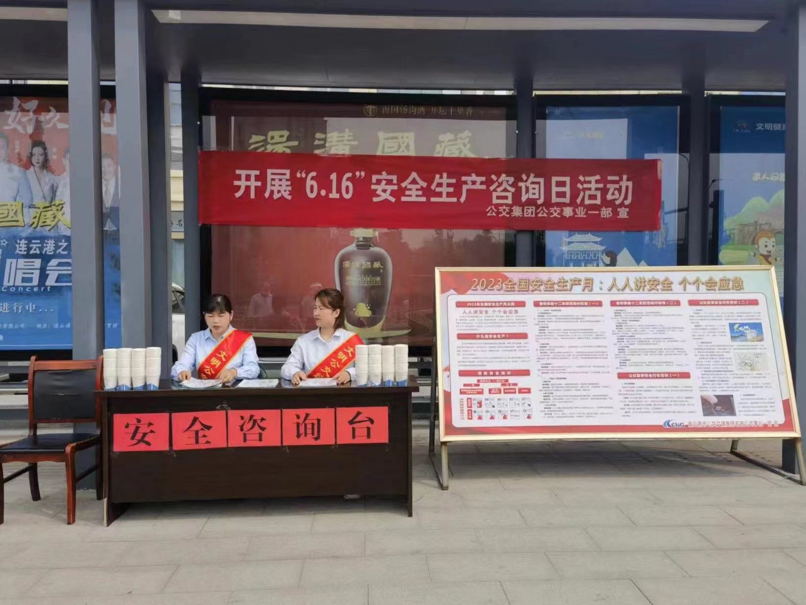 6月16日是全国安全咨询日,公交千亿(中国)统一部署,深入学习贯彻习近平总书记关于安全生产重要论述,坚持“两个至上”,强化“两个根本”,围绕“人人讲安全,个个会应急”主题,在海州客运总站、火车站B区、振兴大厦、市二院西院区、苏欣快客、墟沟购物中心等公交场站,组织工作人员开展“安全咨询日”活动。