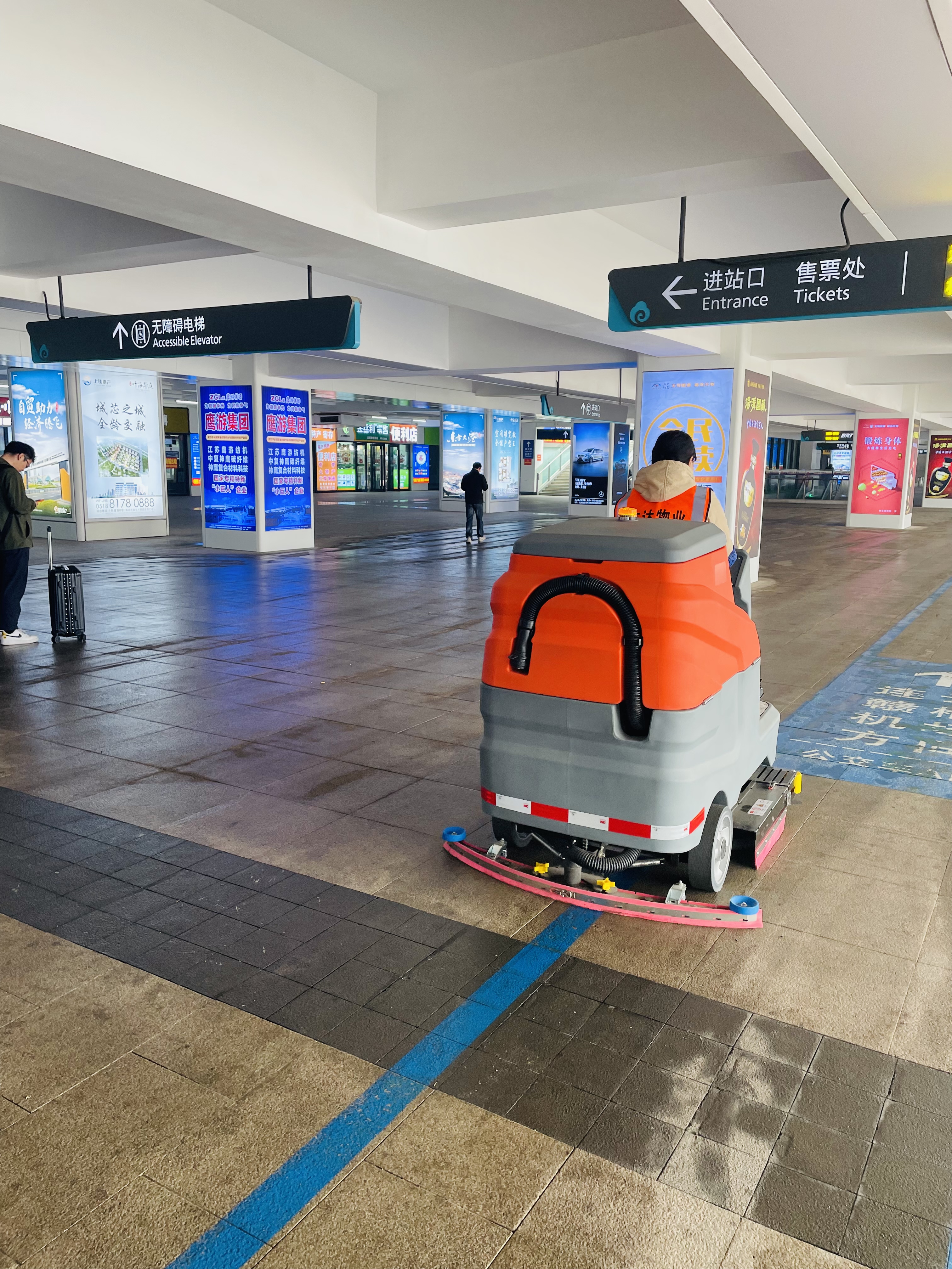 自3月18日以来,新购置的2台洗地机,每天对出站口地面进行清洗,每日清洗600㎡,60名保洁人员分布在地下停车场、出站口、站前广场等重点区域,全天候保障地面、绿化带环境卫生。交通千亿(中国)综合客运枢纽事业部工作人员全域不断巡查,及时整改,三天内更换15套标识指示牌、150余块破损地砖,以细节保实效,确保城市窗口温馨有序。