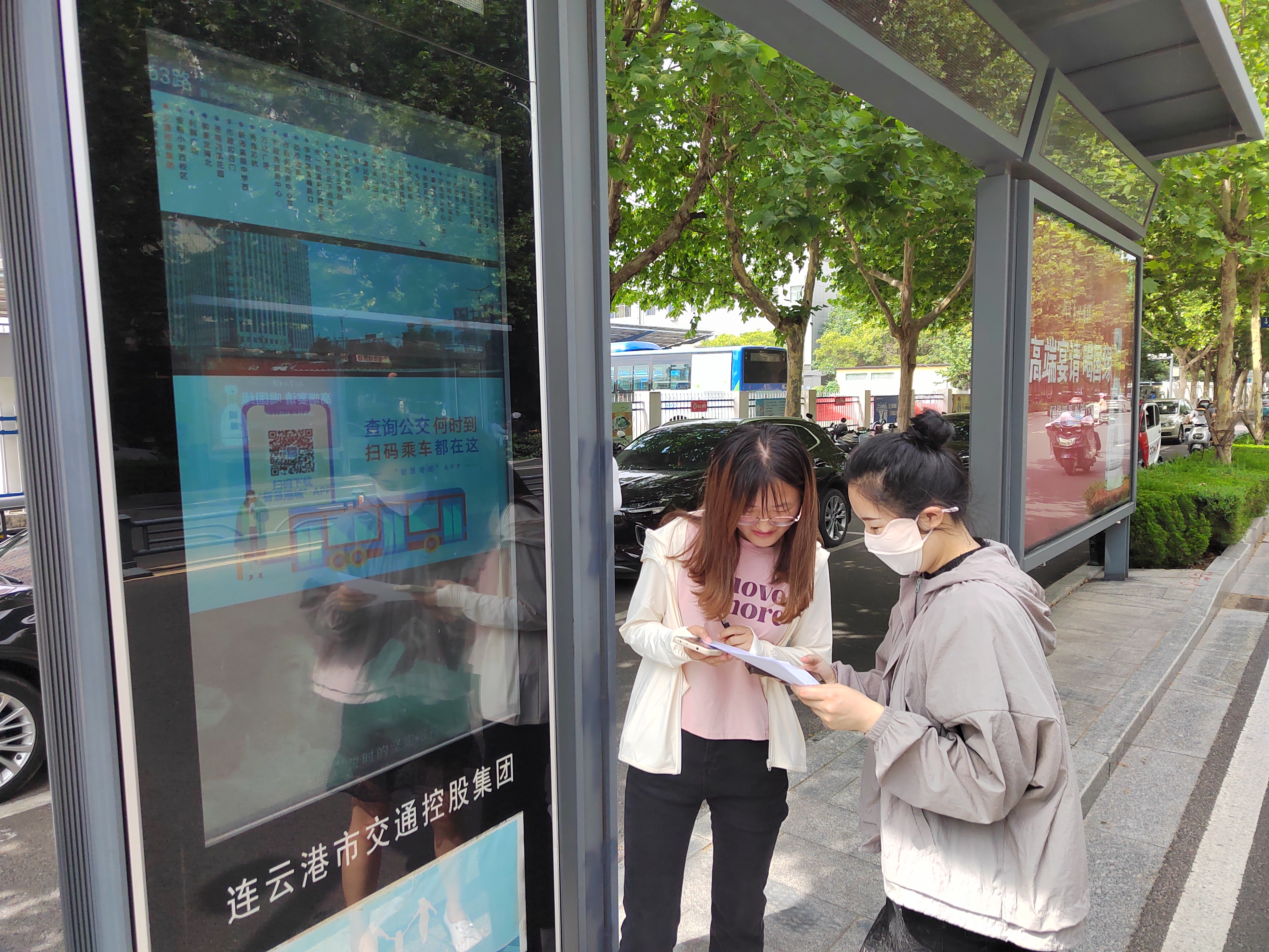 7月7日上午开始,在技术部总监林伟的统筹安排下,部门各员工前往各自负责的站点,在36度高温天气中检查电子站牌显示信息。对照“智慧港城”APP,查看到离站信息是否一致;在车辆进站时记录进站时间,并将线路名称、车牌号等相关信息一一统计。
