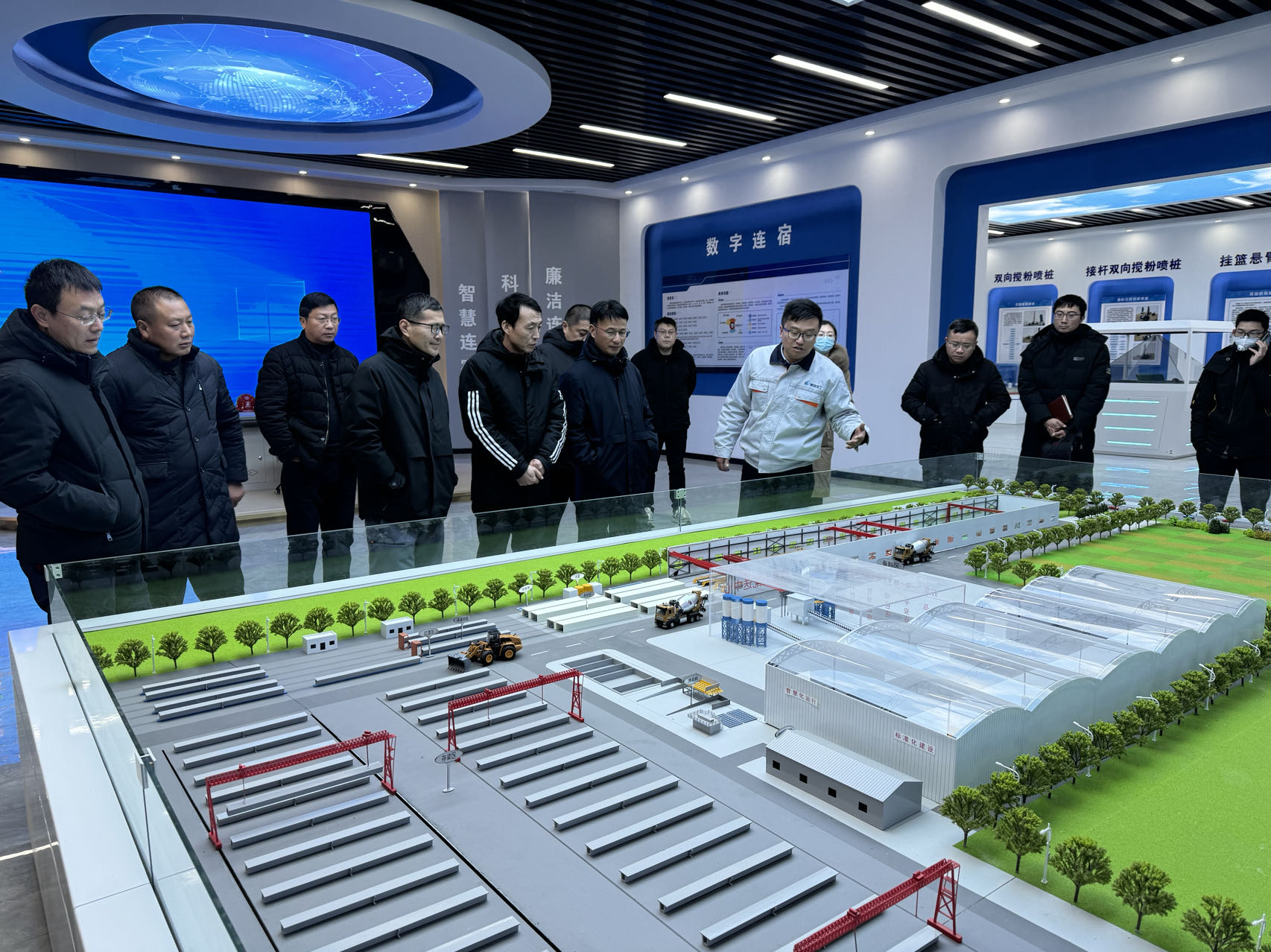 在随后进行的交流活动中,参观人员来到南京交通工程有限千亿官方站网站登录入口连宿高速5标项目部驻地,详细了解了工地试验室的建设、施工现场管理、智慧工地技术的应用,并进行沉浸式安全VR体验、安全实操教学、信息化移动台座和智能液压样板专项学习。