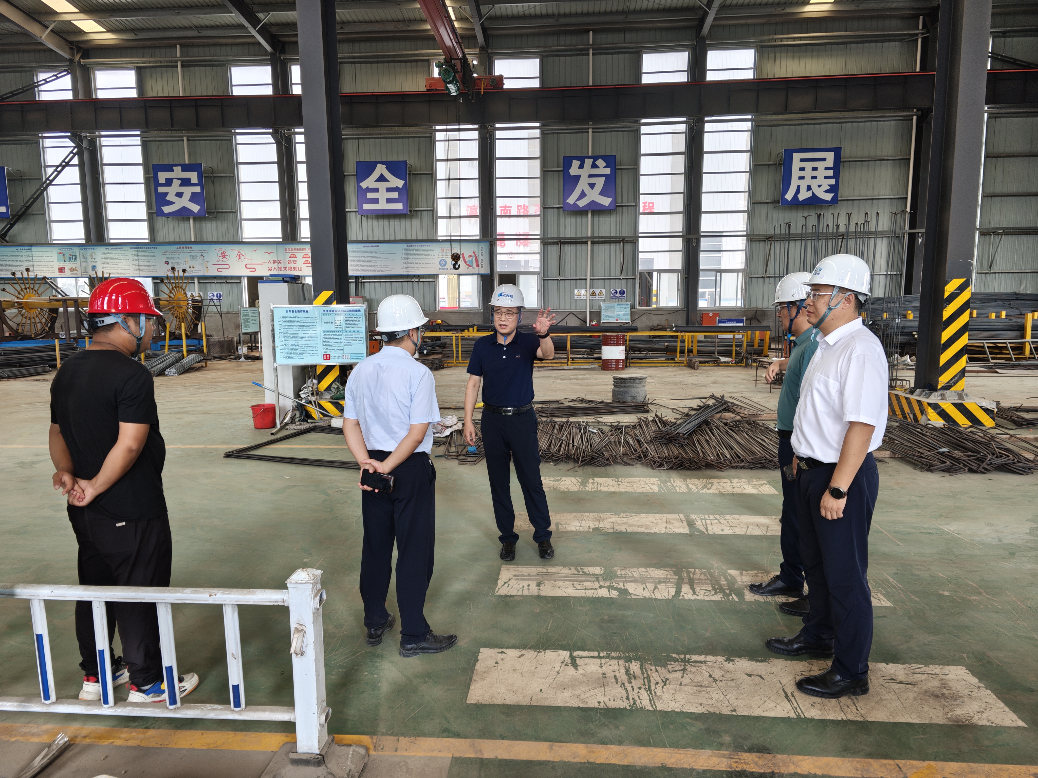 在海建千亿官方站网站登录入口板桥生产基地预制梁厂、钢筋加工车间,仲伟涛详细询问了生产流程和安全管理制度落实情况,并对现场的管理人员进行了随机提问,了解他们对安全生产知识的掌握程度。他强调,安全生产无小事,每一个环节都不能掉以轻心。