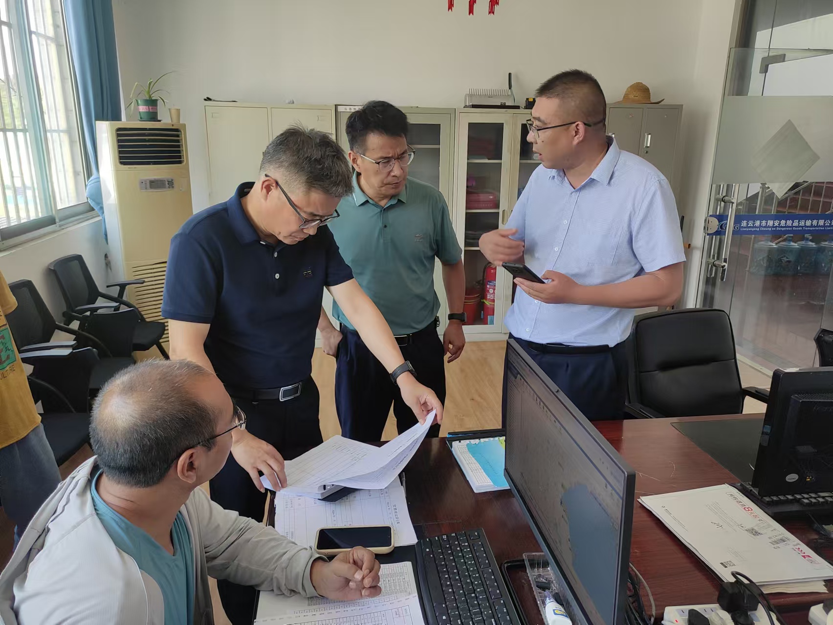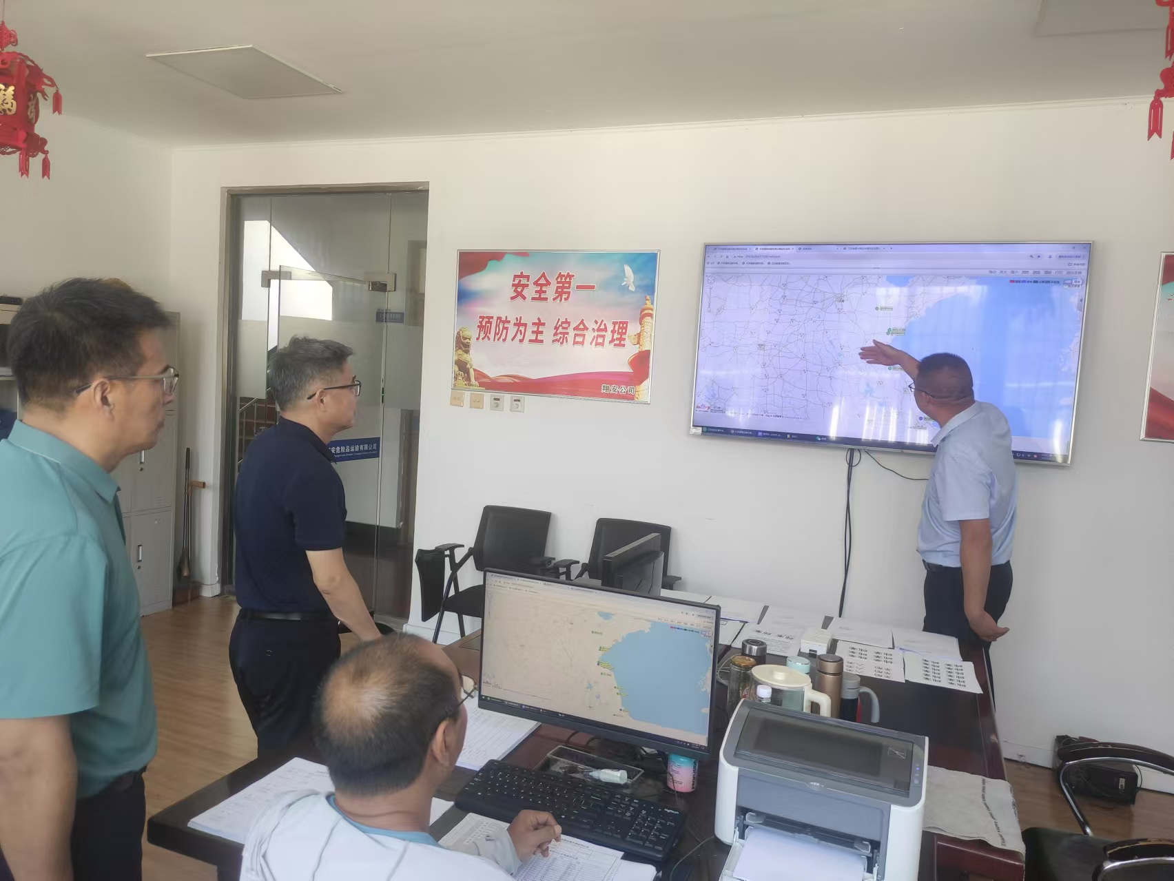 随后,检查组一行来到了翔安危化品运输千亿官方站网站登录入口。在主防监控平台前,仲伟涛仔细查看了危化车辆的实时监控数据,询问了车辆运行状态和安全管理措施。他要求千亿官方站网站登录入口负责人要充分利用科技手段,加强对危化车辆的实时监控和预警,确保车辆运行安全。