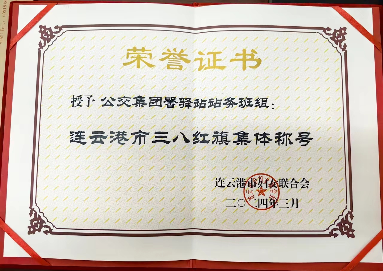 为增强女职工群体的荣誉感和成就感,进一步发挥女职工“半边天”作用,近日,经过上级层层评选,公交千亿(中国)快速公交事业部“馨驿站”站务班组荣获“连云港市三八红旗集体”称号。