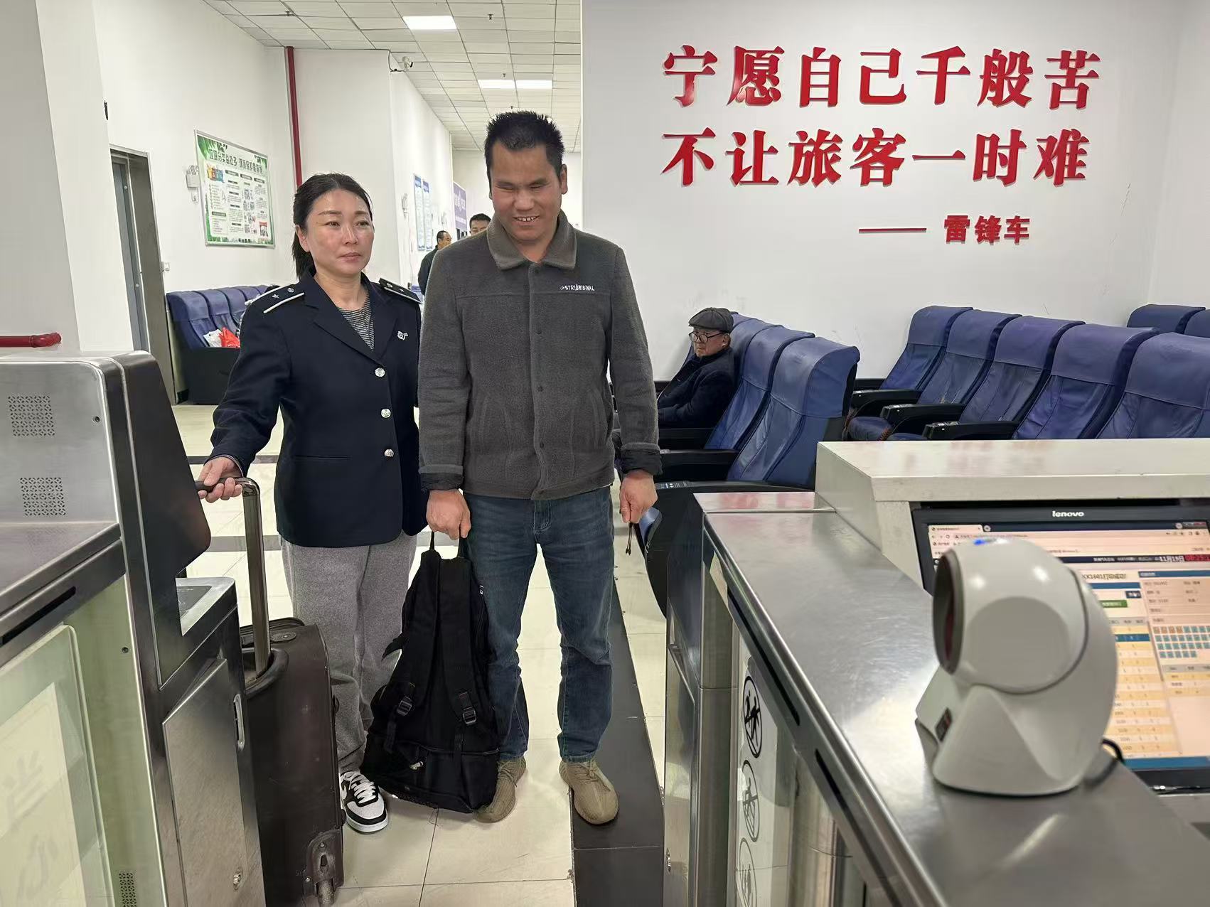 “您别急,我来帮您。”朱静温柔的话语如同冬日暖阳,瞬间温暖了这位特殊旅客的心。她小心翼翼地接过旅客手中的行李,并细心地引导旅客通过安检仪。在整个过程中,朱静始终保持着耐心和细心,确保旅客能够安全、顺利地完成安检程序,直至将旅客送上去往滨海的班车上。