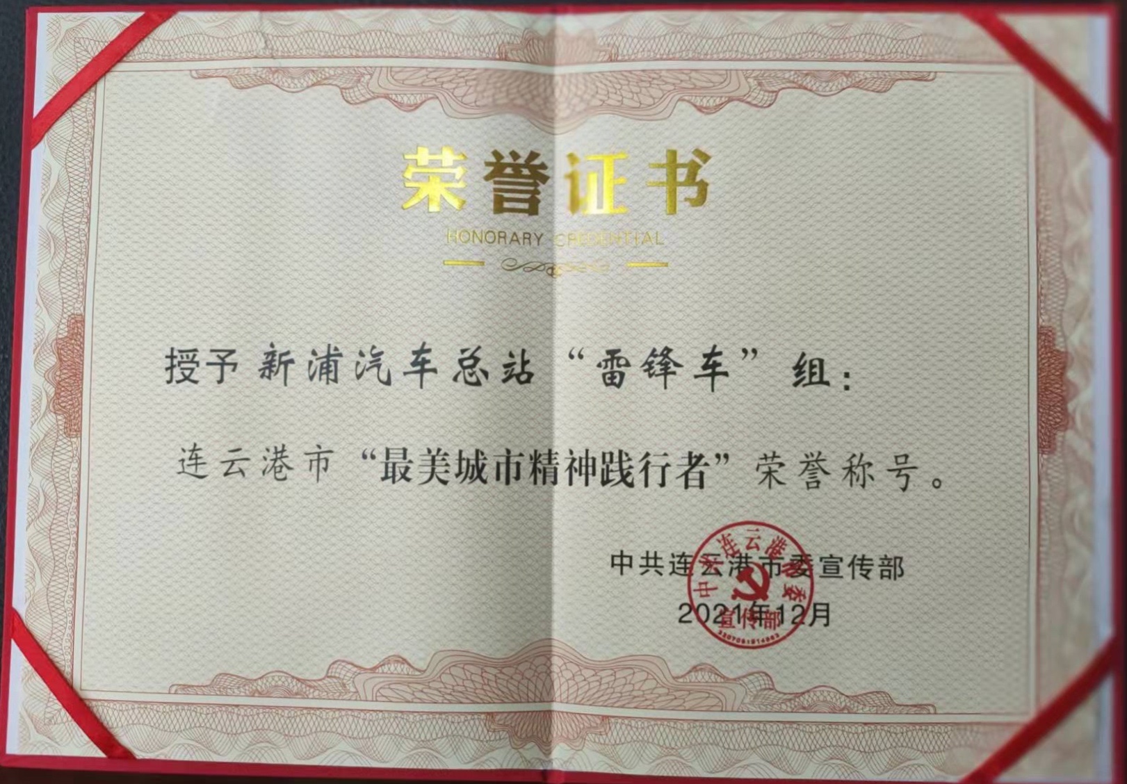 近日,由市委宣传部主办的第八届“最美港城人”系列评选活动落下帷幕,新浦汽车总站“雷锋车”组榜上有名,荣获连云港市“最美城市精神践行者”荣誉称号。