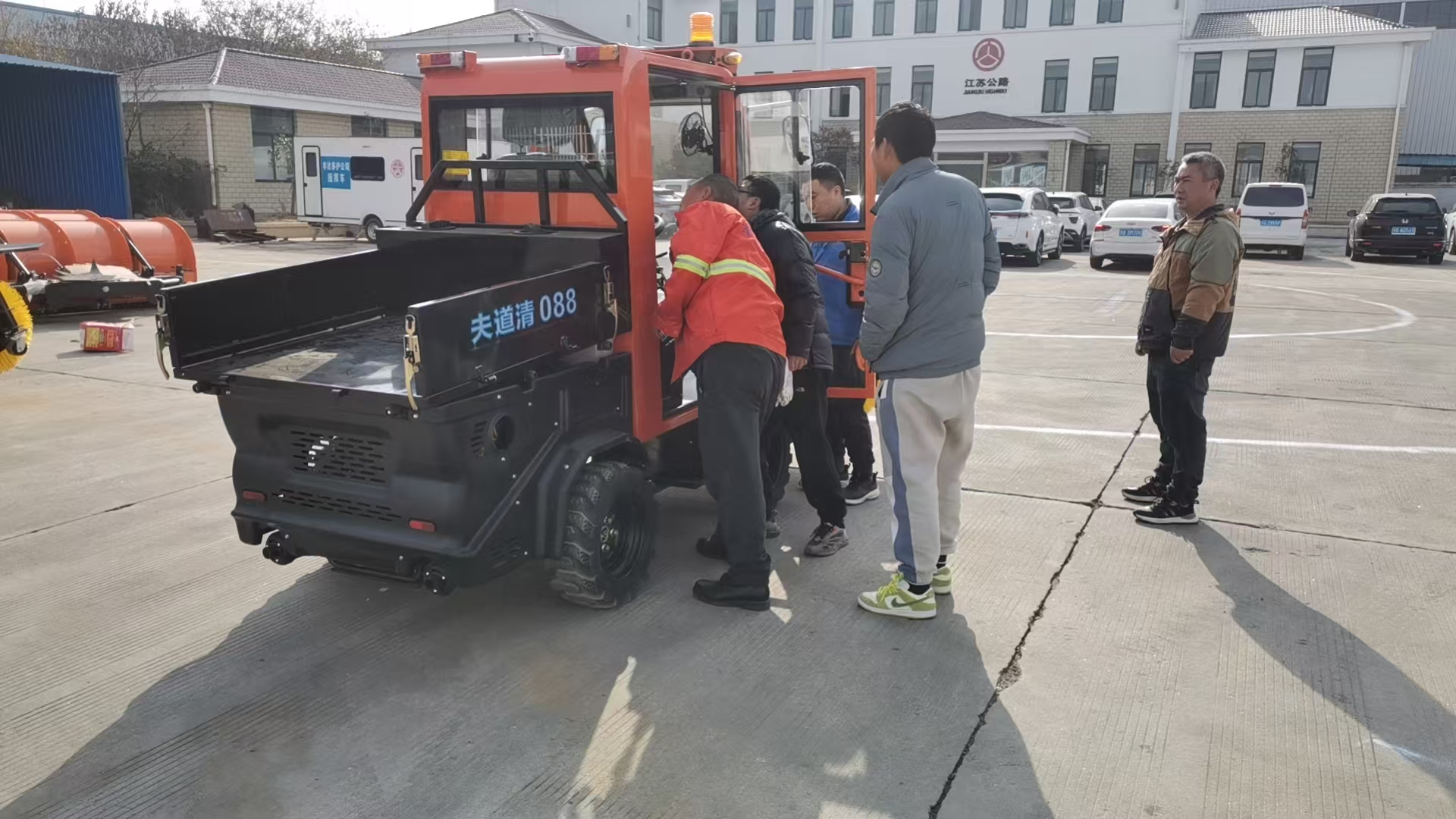 为进一步提升冬季千亿官方站网站登录入口管养的港城大道非机动车道、城市广场、人行步道等狭小区域的道路积雪清扫,增强应急处置能力,丰达千亿官方站网站登录入口近日在大浦养护基地内对新采购的2台四驱全齿轮传动小型驾驶式扫雪车进行了安装调试和人员操作培训。