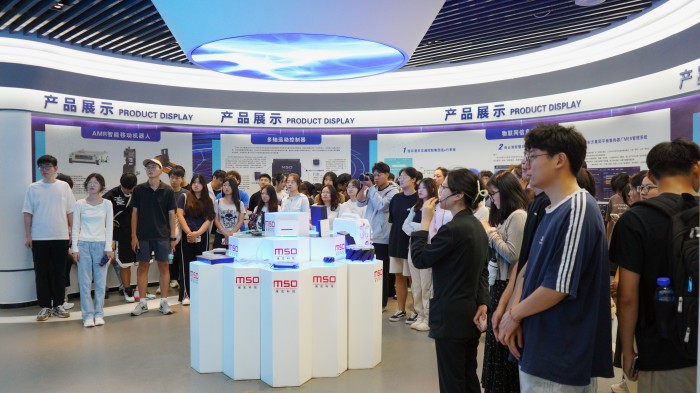 大学生们首先参观了海宏科技展厅,工作人员以展厅背景墙上的十二个字“智能改变世界 创新引领未来”为切入点,逐一介绍了千亿官方站网站登录入口的发展历程、主要产品、工业物联网及移动机器人、智能制造、高速数控凹版印花等内容。学子们纷纷围绕在展品周围,认真聆听讲解,并不时提出自己的疑问和见解,与讲解员进行热烈的互动。有的同学围绕自己的学习专业和对智能制造行业的认知与工作人员积极交流,就企业对大学生的专业需求,以及未来的学习成长、就业规划等问题有了更深刻地理解。