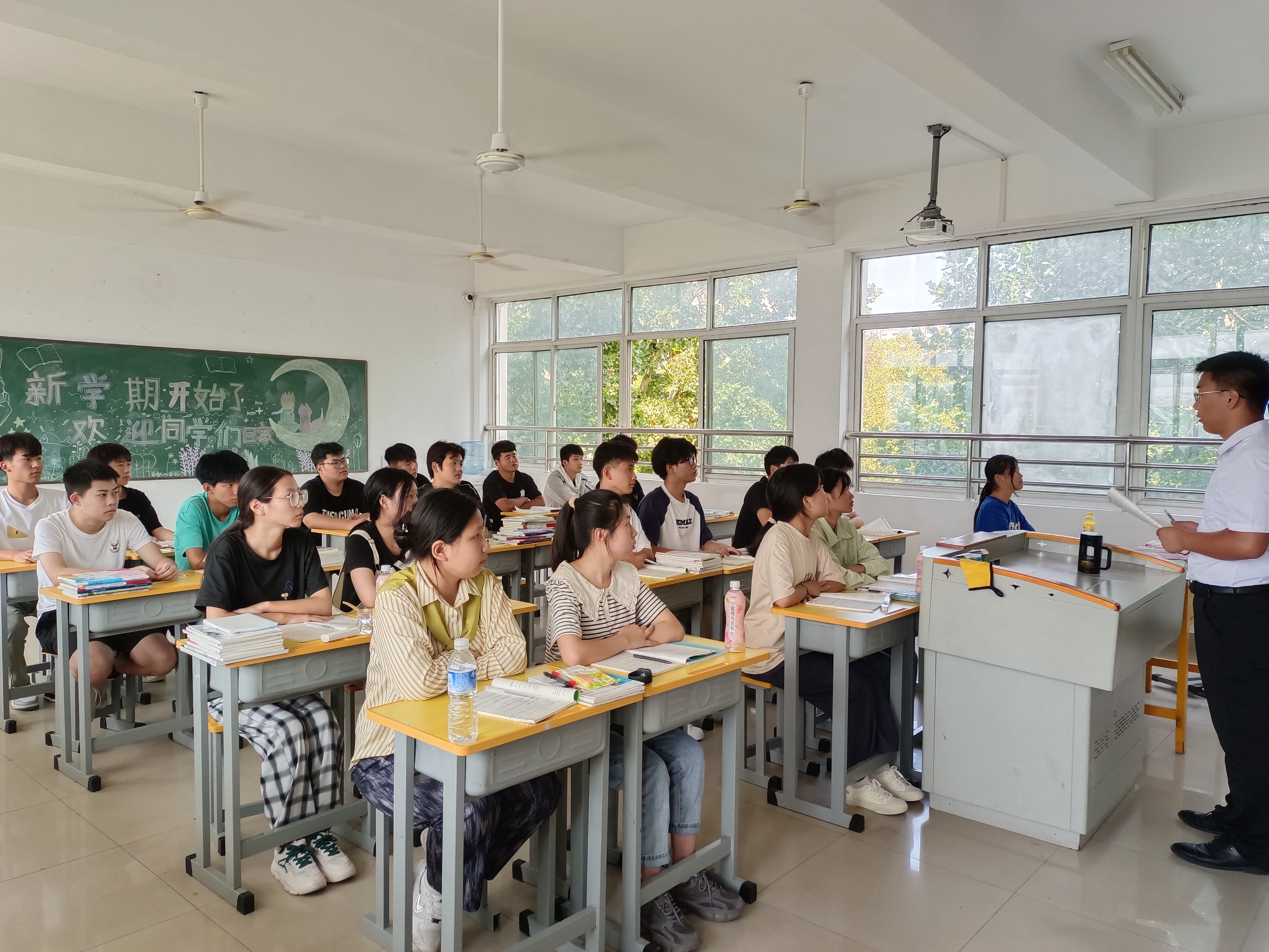 学生们拿起崭新的课本,迈入了新学期新的征程。