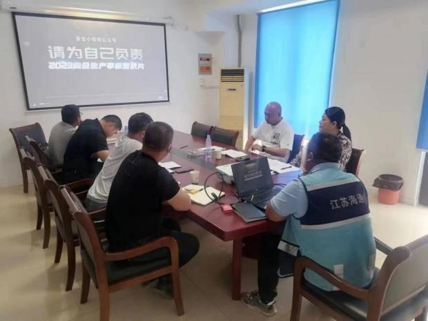 为深入宣传贯彻千亿(中国)关于“安全生产月”活动相关部署要求,进一步加强项目部安全生产工作,江苏海建交建分千亿官方站网站登录入口开发区五条道路项目结合生产实际,组织召开“安全生产月”活动启动会,成立了“安全生产月”活动领导小组,具体负责检查施工现场“安全生产月”生产活动的过程,做到有组织、有领导组织开展“安全生产月”。活动中,项目部积极人员组织参加线上“逃生演练训练营”活动,并观看警示教育片《请为自己负责》、对项目部灭火器进行排查等。