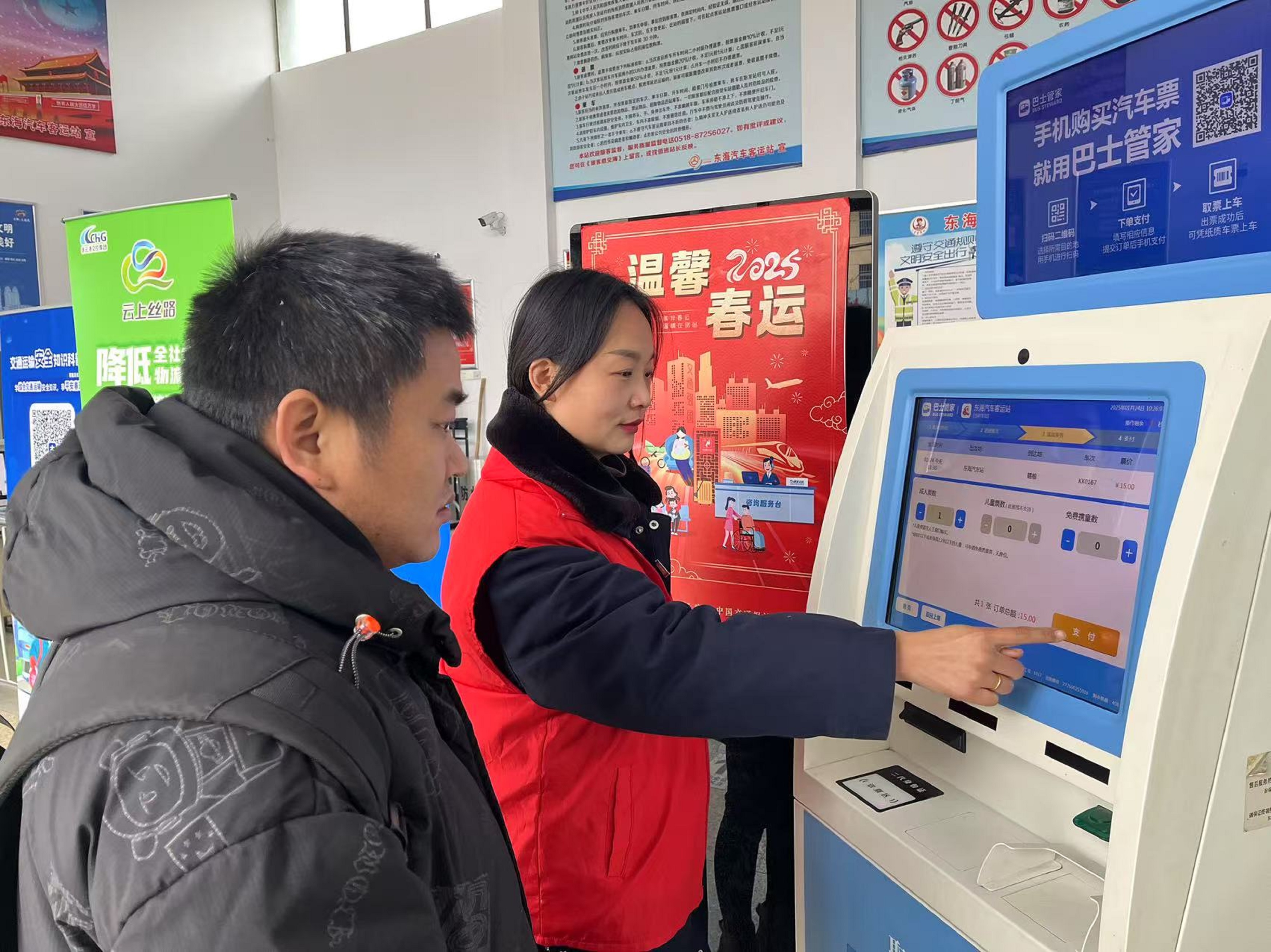 自春运以来,连汽东海分千亿官方站网站登录入口客运站进口处拎着大包小包的旅客们络绎不绝,乘客购票、上车井然有序。为保障春运期间人民群众平安温馨便捷出行,1月22日,连汽东海分千亿官方站网站登录入口客运站化作温暖的港湾,满怀赤诚地开展“暖冬行动”志愿服务活动。