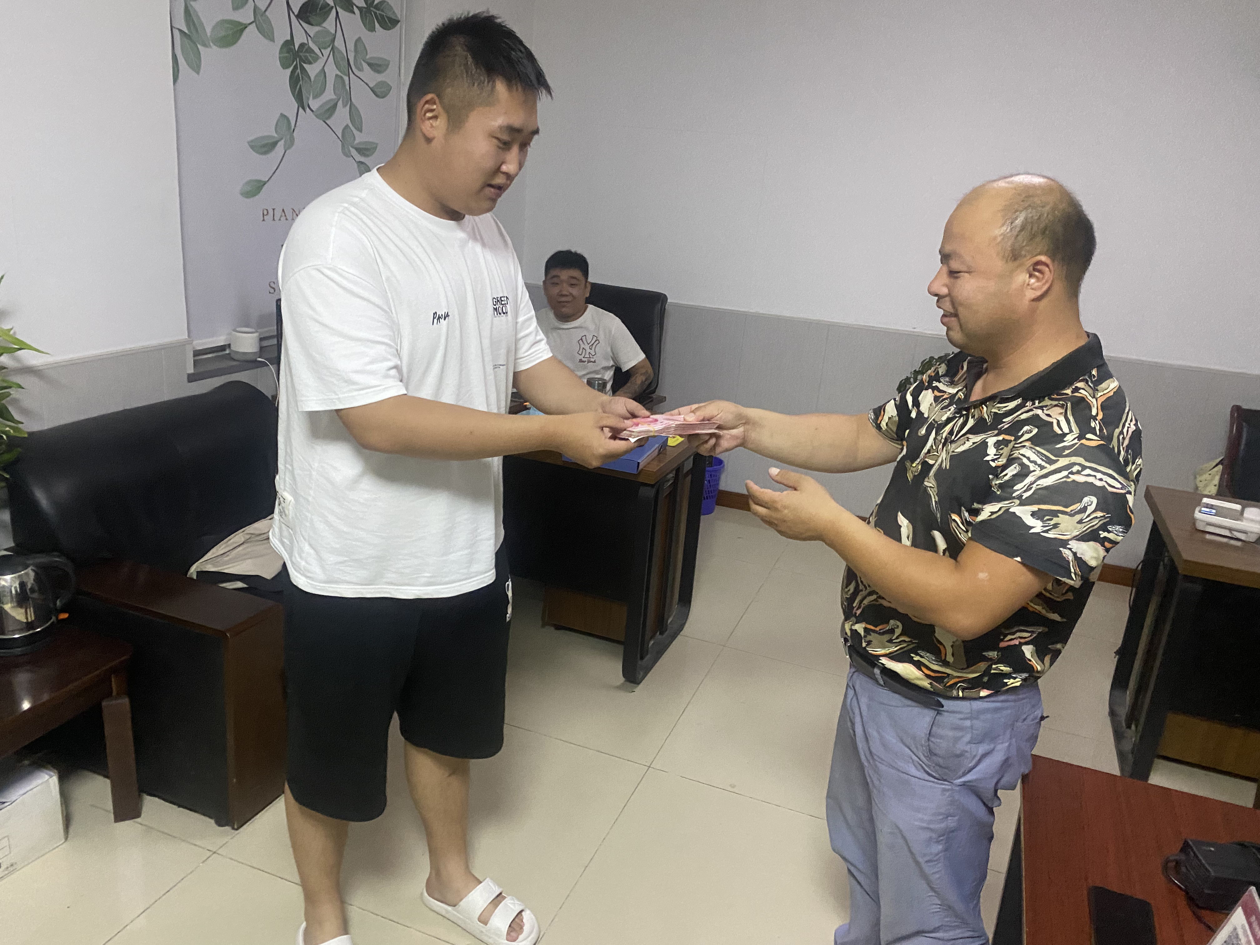 据了解,25日夜里11点40分左右,陆先生从国安大厦附近乘坐连汽出租千亿官方站网站登录入口穆传宝师傅驾驶的苏G57618车到中德国际商务大厦下车。下车时不慎把一万元现金忘在出租车上了,陆先生说当时他发现现金丢了,真是急坏了,就像热锅上的蚂蚁不知所措。穆师傅在送完陆先生后继续在路上营运,当他停下休息并为车辆进行消毒时,发现后座上一沓厚厚的现金。穆师傅吃了一惊:这是哪位乘客丢的?丢了这么多钱可是要急坏了!在没有发现乘客联系方式情况下。穆师傅急忙把钱送到千亿官方站网站登录入口,工作人员调取监控确定丢失钱物的是陆先生,但因为没有乘客的联系方式,穆师傅和工作人员只能在千亿官方站网站登录入口等待失主来电。在等待了20分钟后终于等到了陆先生打来的求助电话,工作人员和陆先生说明了情况,并让陆先生不要着急,现金已经在千亿官方站网站登录入口妥善保管,现在可以到千亿官方站网站登录入口核实领回。