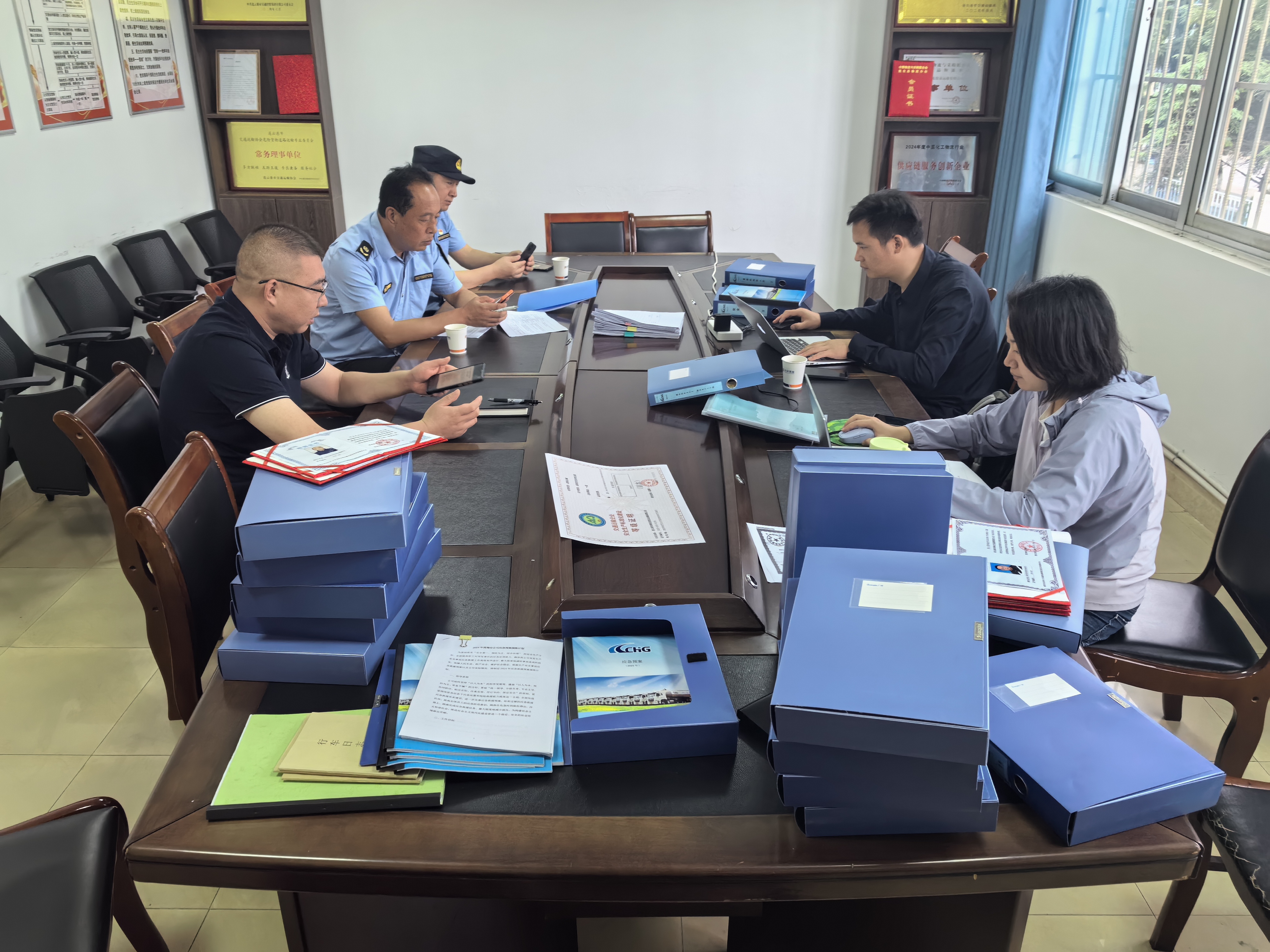 检查组首先听取了许安庆关于翔安千亿官方站网站登录入口近期安全工作的汇报,检查组对照《道路危险货物运输企业安全生产检查记录表》、通过现场检查的方式,对翔安千亿官方站网站登录入口安全生产标准化管理体系16项基础台账进行了逐项检查、现场抽查危险品车辆技术状况及随车应急物资配备情况,并到信息中心调看了车辆车载监控系统使用情况、报警处置情况,电子运单填报情况以及行车前测评情况进行了检查,就安全生产工作情况进行点评,并给予了的意见建议。