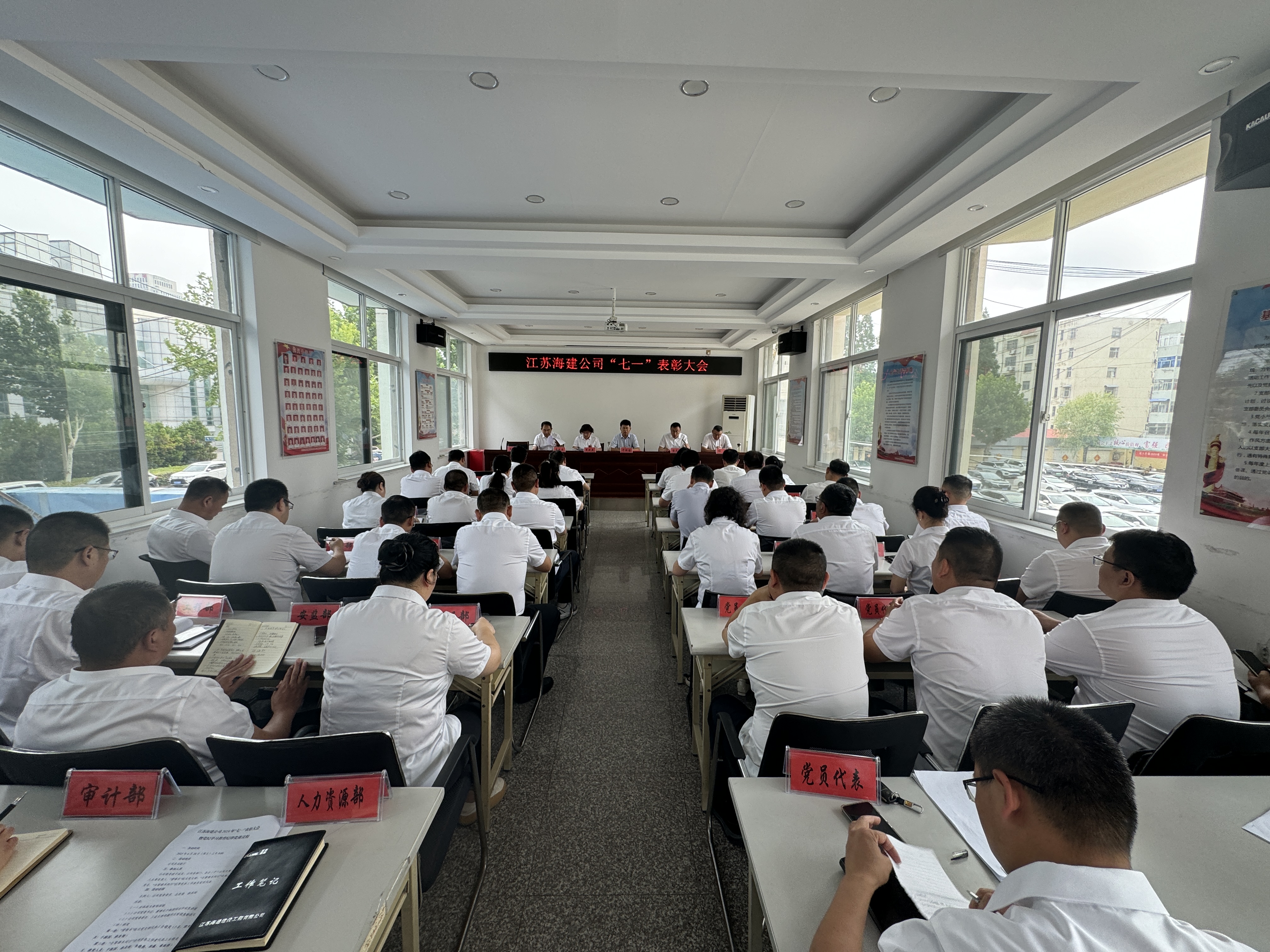 在七一建党节即将到来之际,为深入学习贯彻习近平新时代中国特色社会主义思想,充分发挥各级党组织领导核心作用、基层党组织战斗堡垒作用、广大党员先锋模范作用,江苏海建千亿官方站网站登录入口召开2024年“七一”表彰大会。千亿官方站网站登录入口领导,各部门主要负责人,各分(子)千亿官方站网站登录入口党政主要负责人、“雷锋车”组式党支部代表、“与雷锋车同行”优秀共产党员代表、“与雷锋车同行”优秀党务工作者代表,党员代表共48人参会。会议由党委委员总经理徐其翔主持。