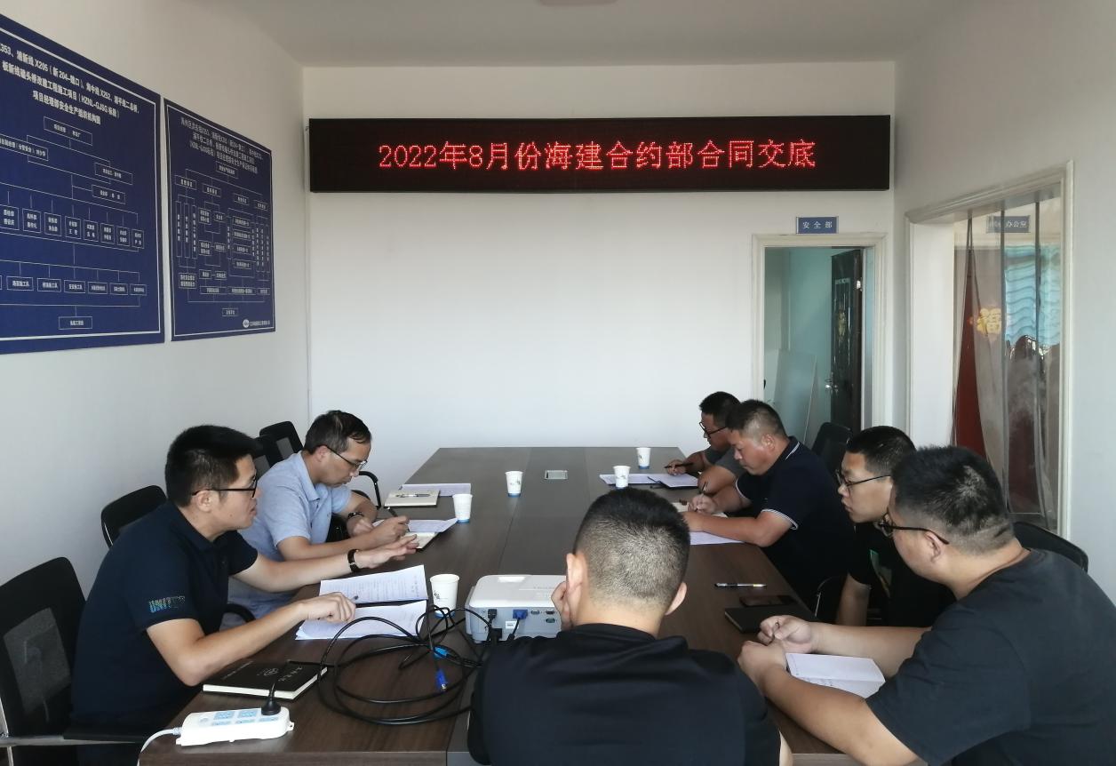 8月23日下午,江苏海建千亿官方站网站登录入口到海州区洪东线X353、浦新线X205(新204-魏口)、海中线X252、浦平线二总桥、板新线磕头桥改建工程项目部开展合同、法务交底培训。