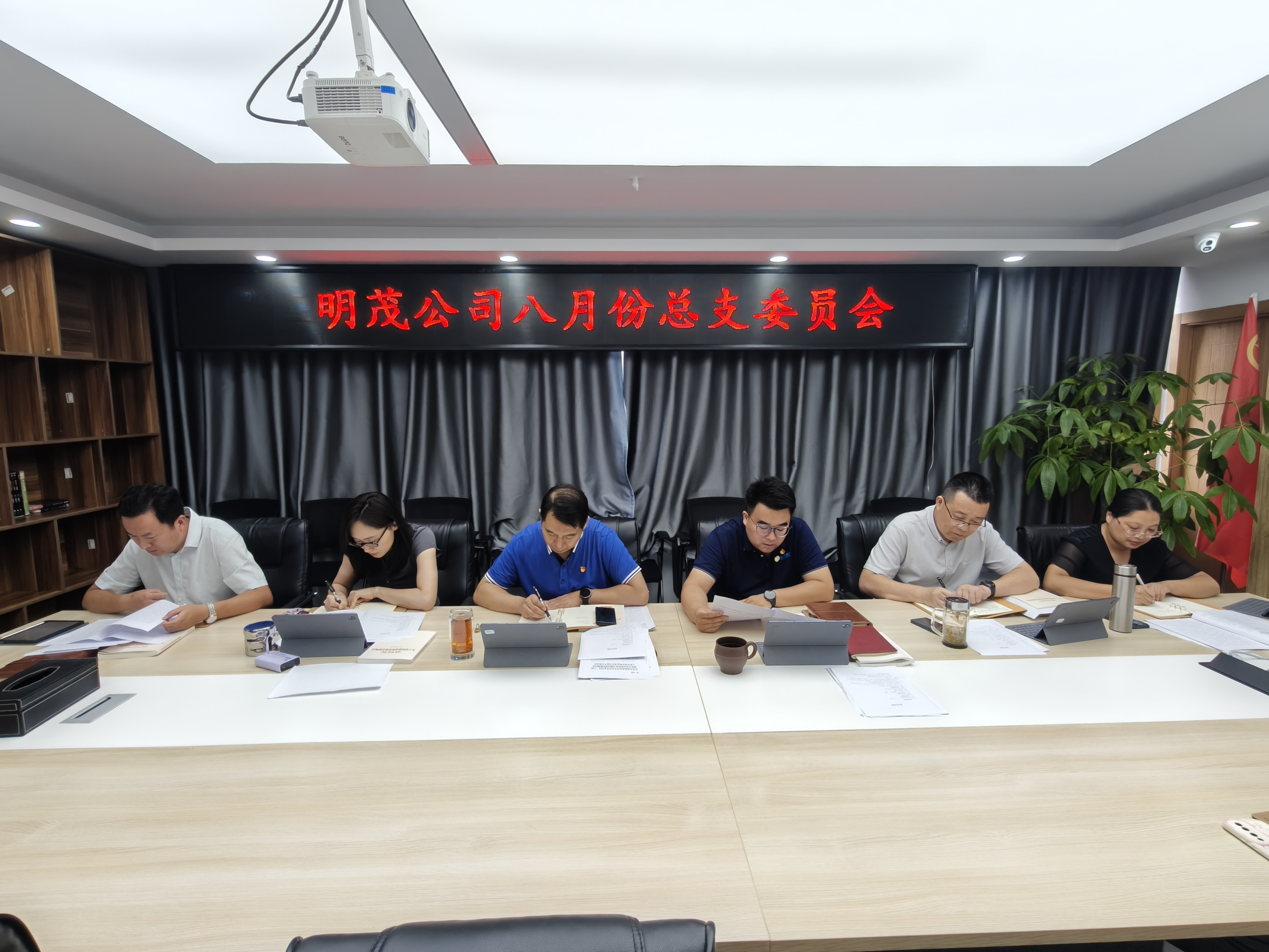 8月8日下午,明茂千亿官方站网站登录入口党总支召开8月份总支委员会,传达学习中共中央政治局会议精神,部署贯彻落实工作。会议由千亿官方站网站登录入口党总支书记、董事长袁军同志主持召开。明茂千亿官方站网站登录入口领导班子成员参加会议、相关部门负责人列席会议。