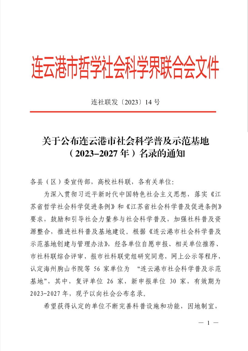 近日,连云港市哲学社会科学界联合会公布连云港市社会科学普及示范基地 (2023-2027年)名录,“雷锋车”事迹陈列馆榜上有名。