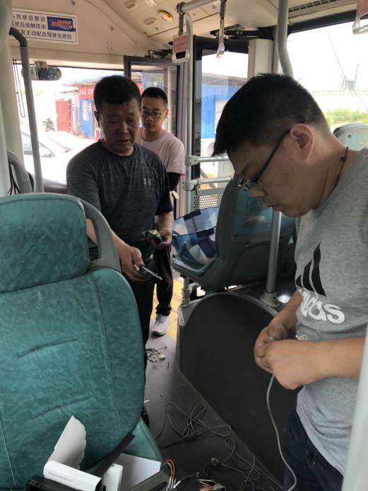 为了全力做好车辆上线运营准备工作,6月19日,市民卡千亿官方站网站登录入口安全信息部部长马宝浦、智慧千亿官方站网站登录入口技术总监林伟及智慧公交事业部技术人员,加班加点、顶着酷暑加紧安装刷卡机、报站器、摄像头,并对报站器、车内外LED显示屏进行联动调试。