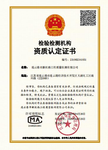 近日,江苏海建新丝路检测千亿官方站网站登录入口申报的检验检测机构资质认定,经江苏省市场监督管理局核准,换证成功并取得证书。
