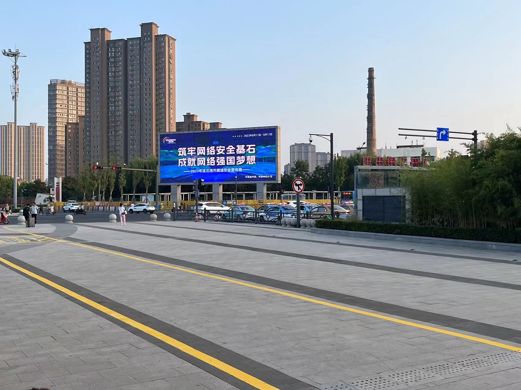 在苏欣快客站户外LED条屏投放了宣传标语,面向社会及进站旅客宣传网络安全知识