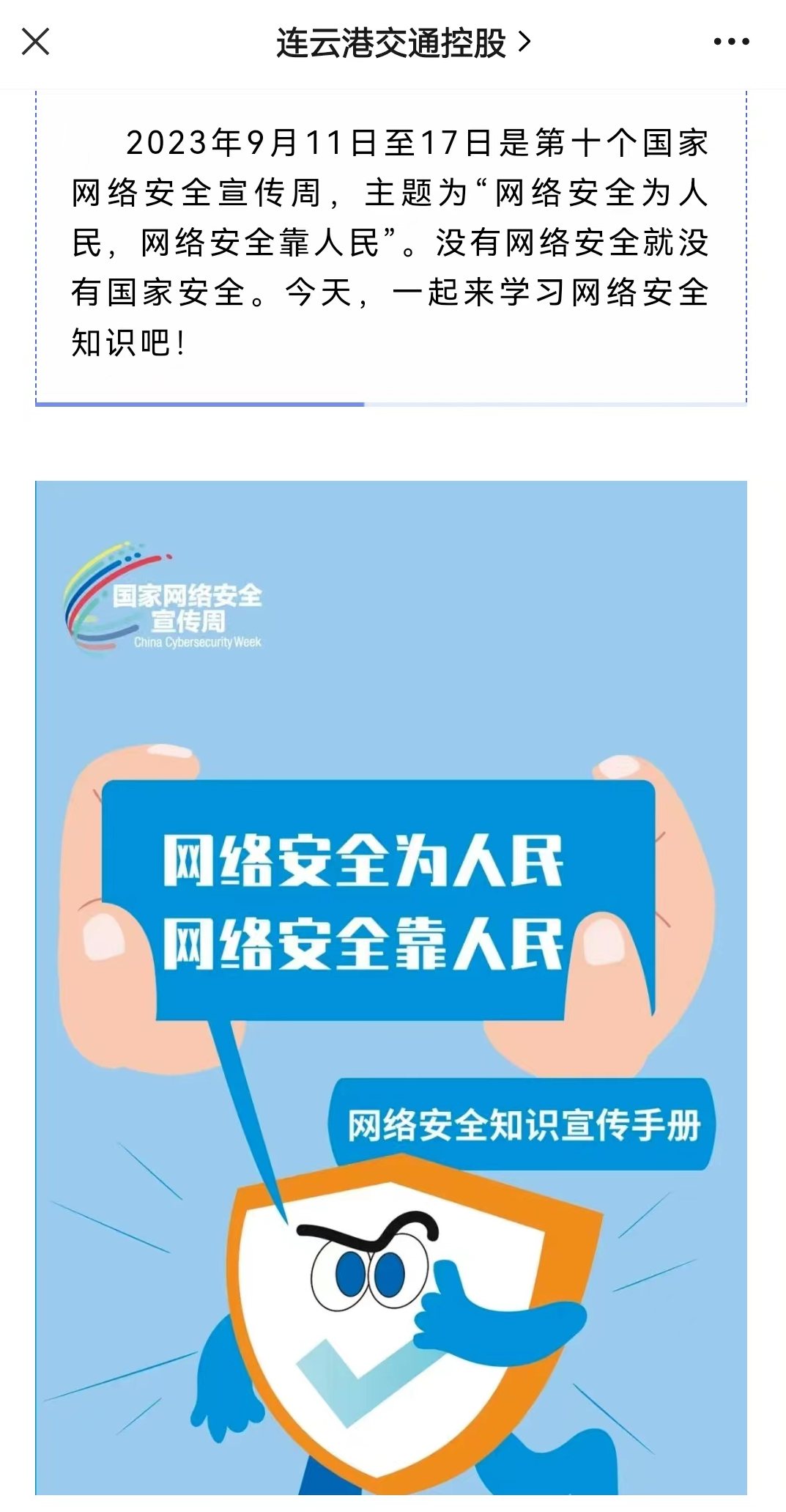 9月11日至17日,是第十届国家网络安全宣传周。活动期间,千亿(中国)积极营造宣传氛围,通过“线上+线下”相结合的方式,发挥交通产业优势,普及网络安全知识,提高全民网络安全防范意识和应对能力,助力2023年度网络安全宣传周活动顺利开展。