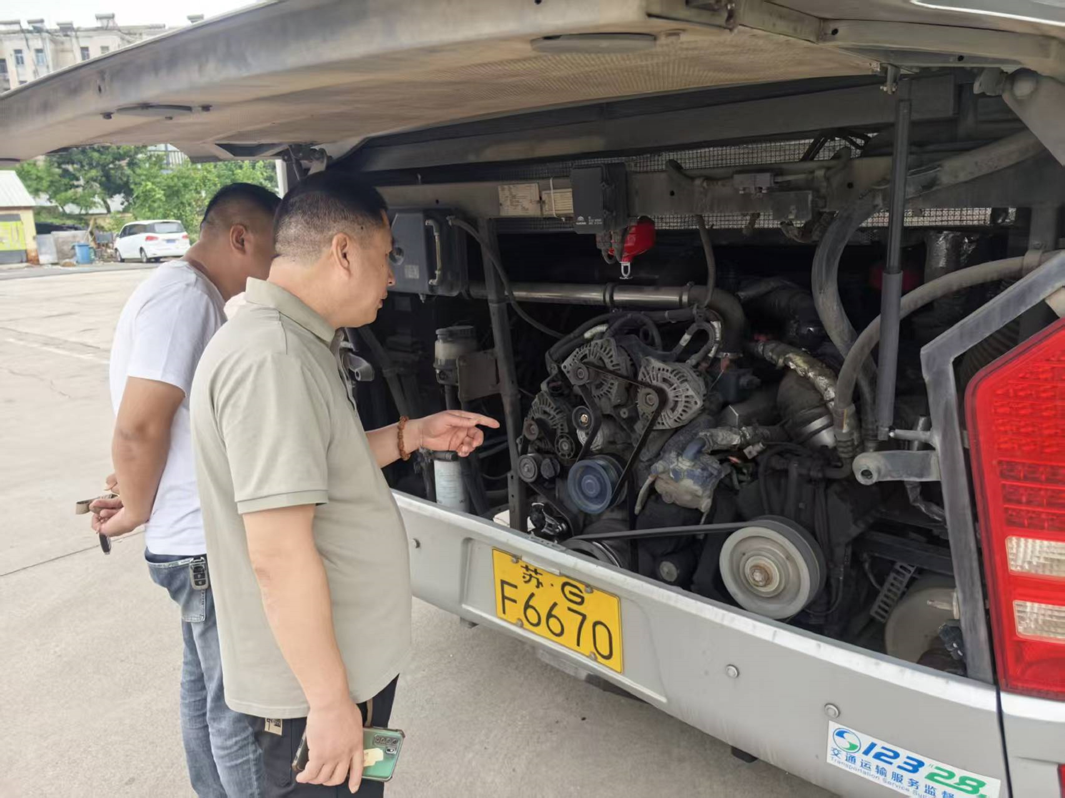 此次专项检查以车辆关键安全部件与应急设备为核心:一是应急保障设备方面,逐车检查灭火器压力值是否正常、是否在有效期内,安全带是否齐全,安全锤是否配齐且位置固定,确保突发情况下能快速取用;二是车辆发动机,细致检查发动机舱线路、油路是否存在老化破损,排查油污、漏电等隐患;三是车辆灯光系统,对前照灯、转向灯、刹车灯、雾灯等进行逐一测试,保障夜间及恶劣天气下行车视野清晰;四是制动系统,检查轮胎及刹车片磨损程度、制动液液位及制动效果,杜绝制动失效风险。