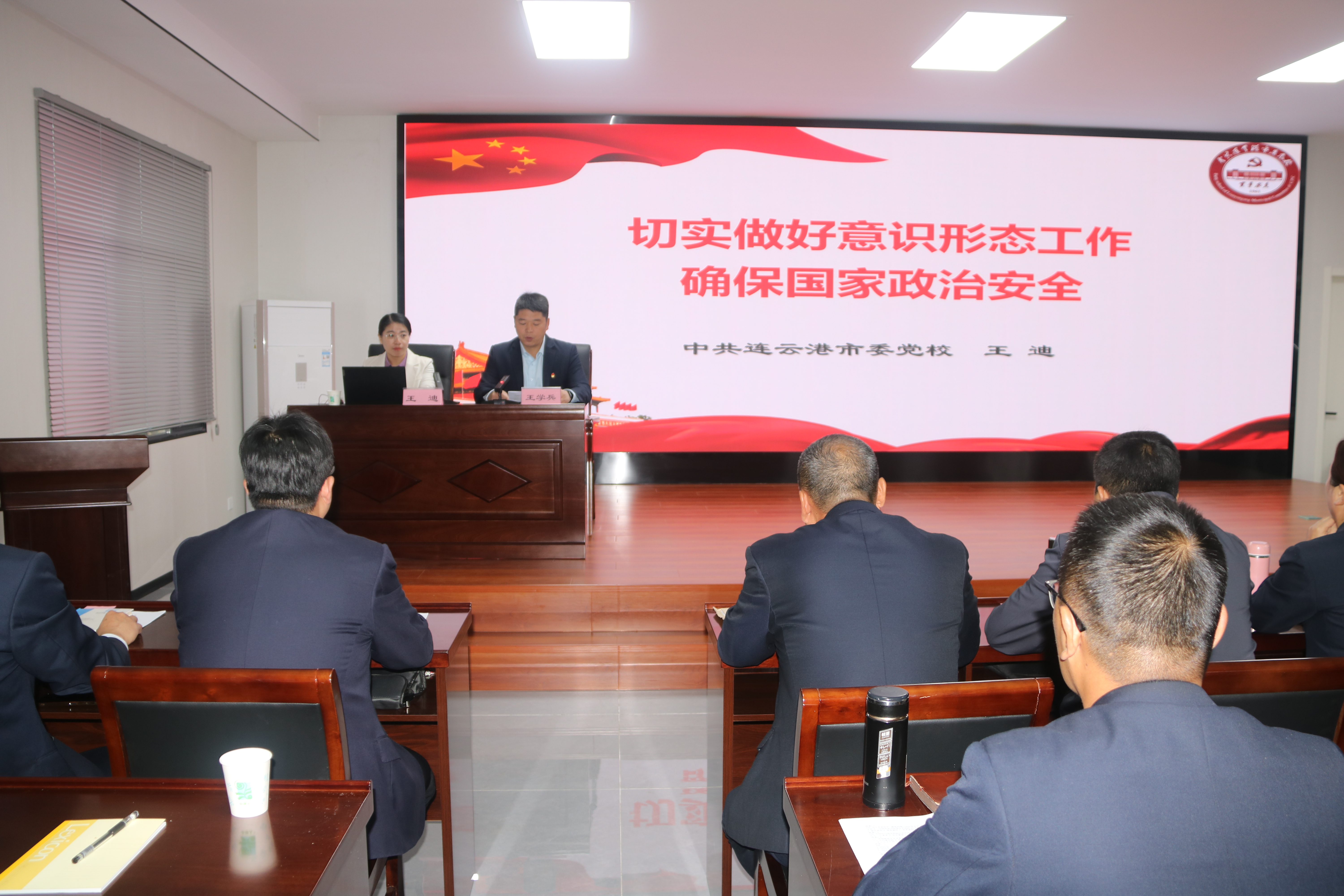 市委党校马列教研室讲师王迪以《切实做好意识形态工作 确保国家政治安全》为主线,主要以把握意识形态工作的重要性、正视意识形态工作的复杂性、增强意识形态工作的协同性三个部分进行重点阐述当前意识形态工作的极端重要性。