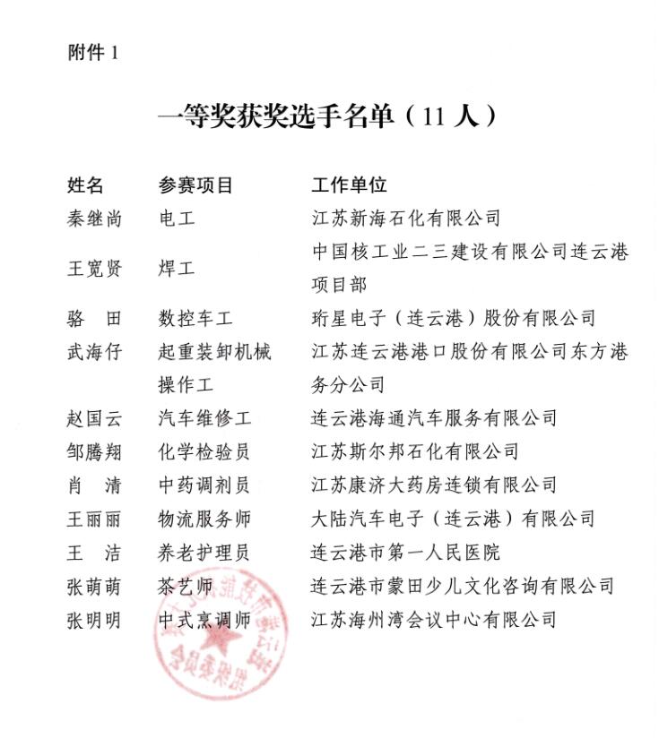 大赛成绩的取得,离不开竞赛选手坚持不懈的拼博精神和精益求精的工匠精神。据悉,对获得决赛一等奖的赵国云,由市政府授予“连云港技能状元”荣誉称号,经综合考察合格后由市总工会授予“连云港市五一劳动奖章”荣誉称号。对获得三等奖的相帅和张建驰,由市人力资源和社会保障局授予“连云港市技能标兵”荣誉称号,市总工会授予“连云港市五一创新能手”荣誉称号。