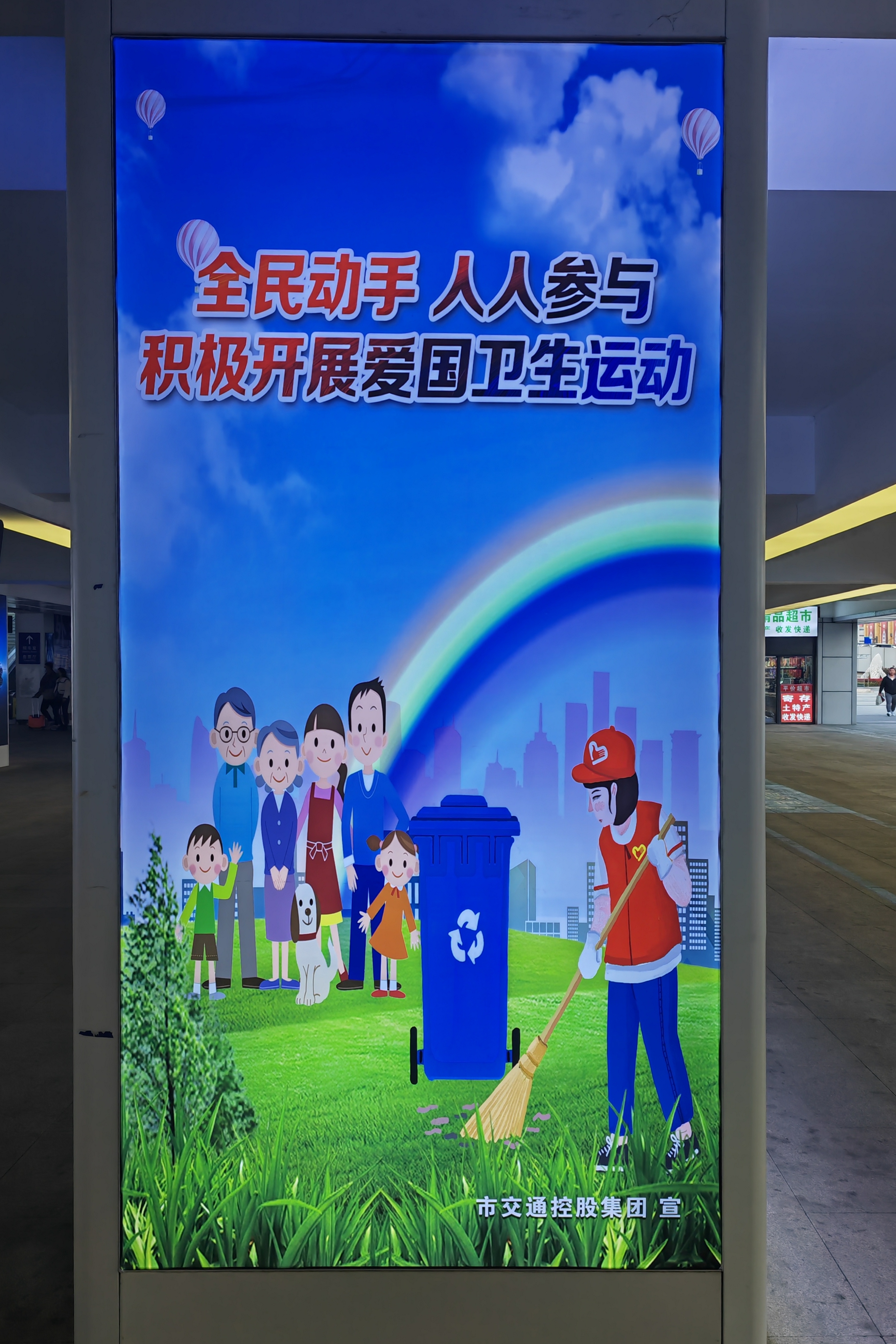 一是无死角整治重点区域环境卫生。落细落小落实交通场站、重要道路、经营场所等重点区域整治工作。综合客运枢纽72人强力保障环境安全卫生,洗地机每日清洗600㎡地面,更换15套标识指示牌、150块破损地砖;港城大道增植乔木289棵、灌木1200㎡,2辆清扫车循环工作,60名保洁人员全天保障绿化、道路环境整洁美观;全市近500个常规公交站亭倍增人力定岗保洁,同步开展硬件修护工作,更换LED条屏近70个,千亿(中国)每4小时全线巡查一次;海鸥广场、繁荣路、创意716产业园,在要求经营商户自行整改的基础上,加大巡控纠治力度,净化经营场所内外环境。二是拉网式提升工程项目现场环境。强化加油站、停车场、土地资源开发等项目现场卫生环境和安全环境保障措施,提升待开工场地现场环境标准,确保围挡围墙严密牢固,场地内部干净整洁。三是高质效开展公益宣传氛围营造。营造浓厚宣传氛围,引导市民凝聚力量。利用近500个常规公交候车亭、9个户外LED大屏、15个户外广告牌、综合客运枢纽电子大屏、广告灯箱等海量媒体资源,做好“创卫”公益宣传氛围营造工作,公交站亭在刊公益画面覆盖率超50%,综合客运枢纽电子大屏公益画面刊播频率达15000次/日。