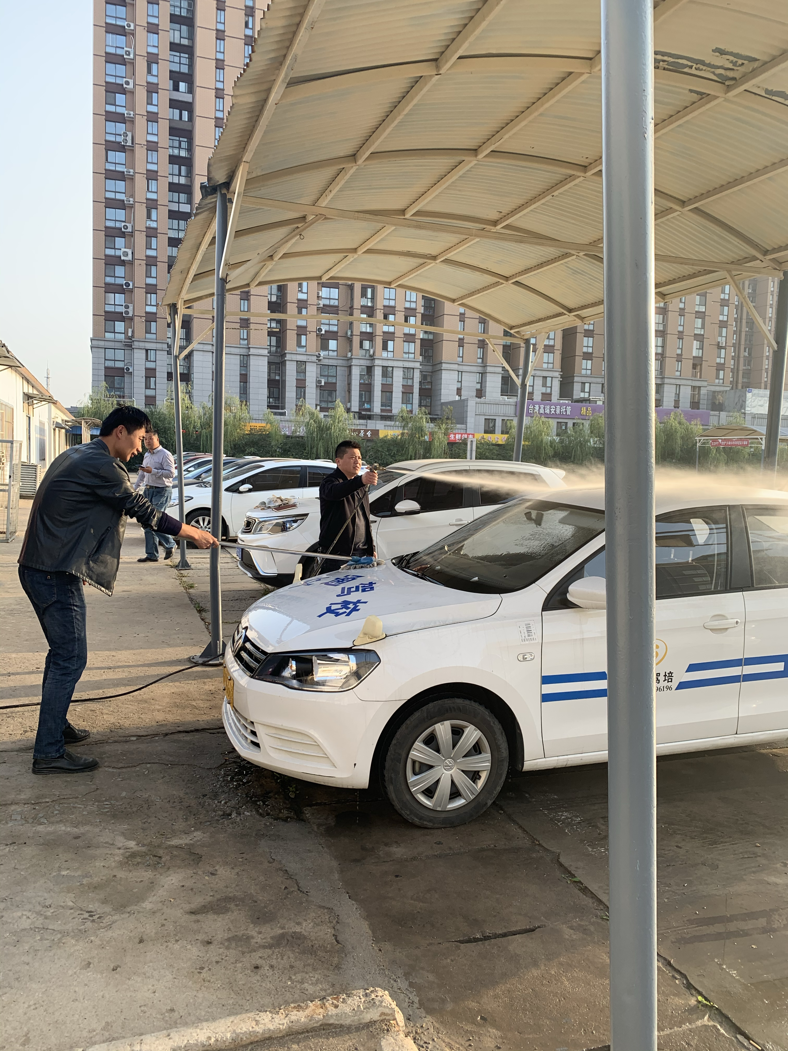 在活动最后,由机关支部全体党员同志为一线教练员清洗教练车,通过这样一种形式,大大的激发了每名党员全心全意为人民服务的决心。