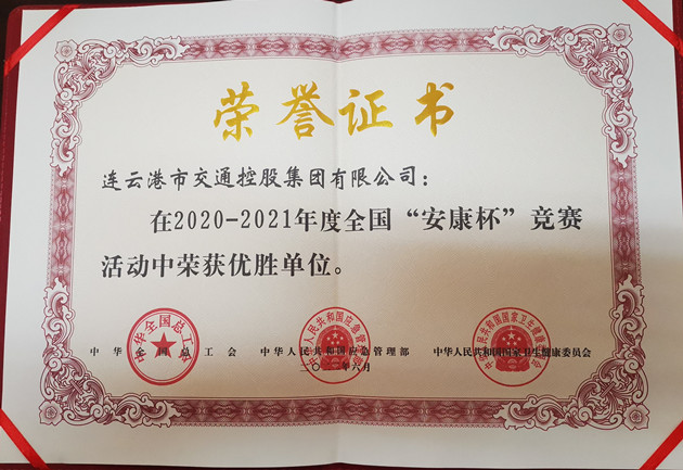 近日,中华全国总工会、应急管理部、国家卫生健康委员会联合发文,表彰2020—2021年度全国 “安康杯” 竞赛活动先进集体和优秀个人。交通控股千亿(中国)荣获全国“安康杯”竞赛优胜单位,全市获此殊荣的共有两家单位。