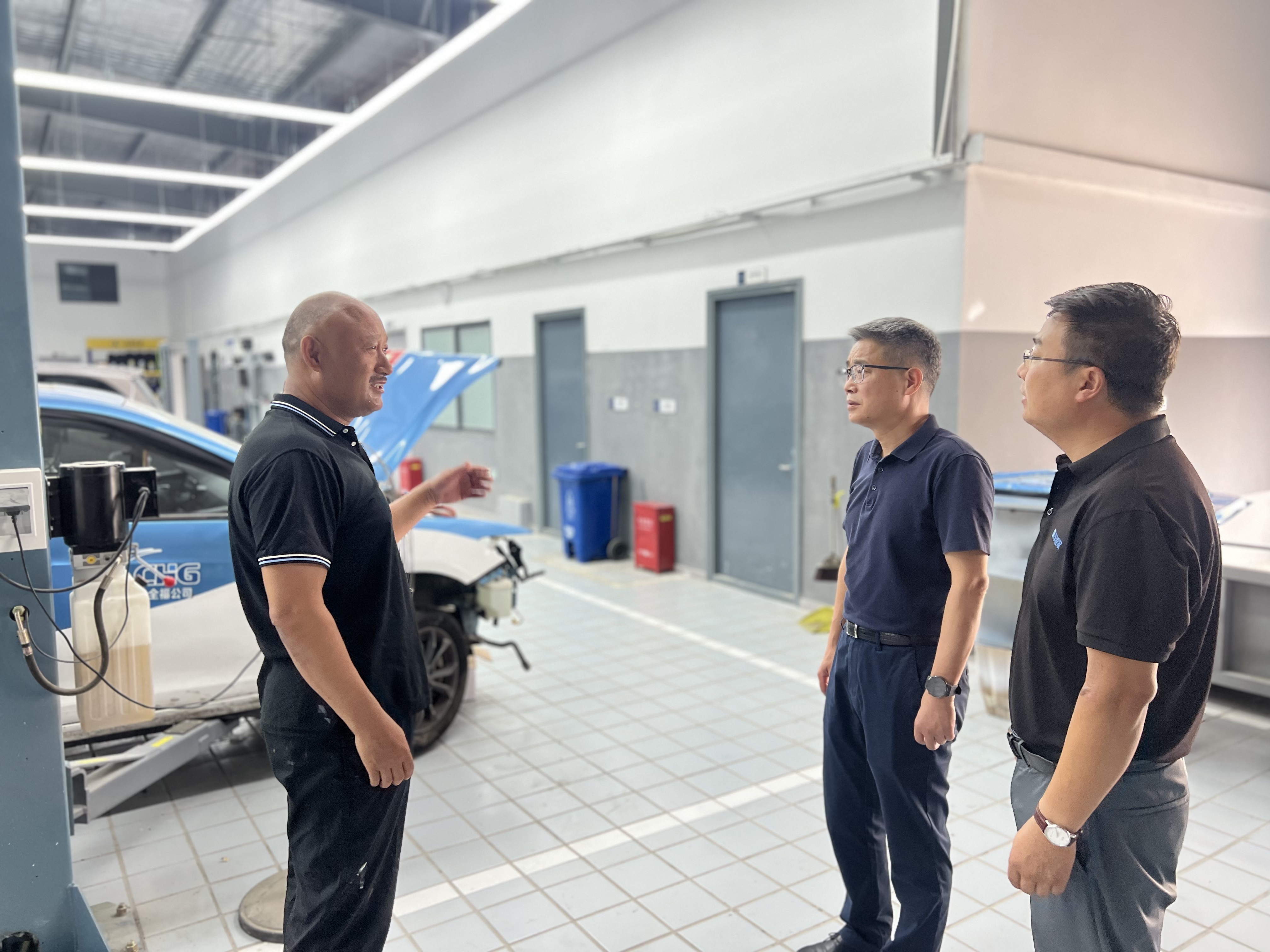 在比亚迪运营店维修车间,慰问组实地查看通风降温设备运行状况,详细了解维修作业流程和劳动保护措施。仲伟涛与"全国五一劳动奖章"获得者何锡忠亲切交流,勉励他充分发挥劳模示范作用,带领团队在确保防暑安全的前提下,积极参与劳动竞赛,打造更多精品工程。同时要求企业切实履行主体责任,不断改善职工工作环境,提升职工生活品质。