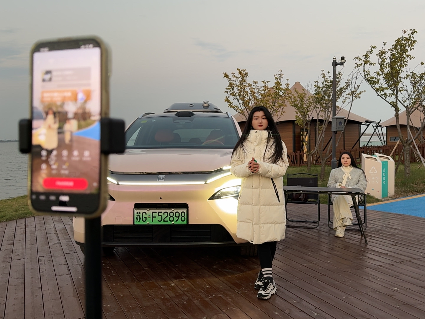 直播选在营地野庐客房外临水平台,分上午10:35-12:05、下午3:05-4:35两场,共计3个小时。镜头中比亚迪唐LEV外放电接电火锅的烟火气,与露营搭帐、烧烤飘香、临湖观景的营地元素交织,既体现新质生产力赋能的车型优势,又散发户外休闲的营地魅力。直播热度全程在线,每分钟约100人在线,总曝光达3万人次,近200名网友留言询问营地信息。暮色渐浓时,粼粼波光映着车身线条,让互动多了份自然治愈的温度。
