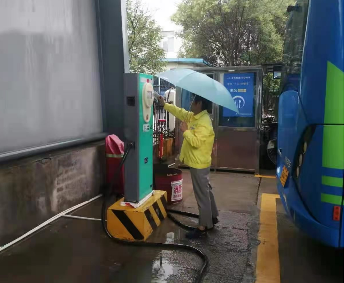 面对风雨来势汹汹,运维团队也是无畏风雨,坚守岗位,做好设备防护、用高度责任心确保各个场站充电设施安全,其中海州西门、财校及几个没有雨棚的充电站受暴雨影响,积水深处达300毫米,造成近百余辆充电车辆紧急转场充电,地面到处是雨水冲流来的垃圾,暴雨过后及时组织人员合力清理站内积水,做好清洁疏通,以最快速度恢复正常运行,全力做好公交车充电保供。