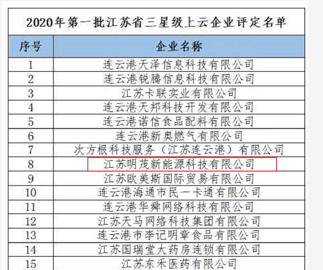 日前,明茂新能源千亿官方站网站登录入口顺利通过江苏省三星级上云企业评定工作。这是该千亿官方站网站登录入口落实《省政府关于深化“互联网+先进制造业”发展工业互联网的实施意见》和省工信委要求,提升企业管理结出的又一成果。