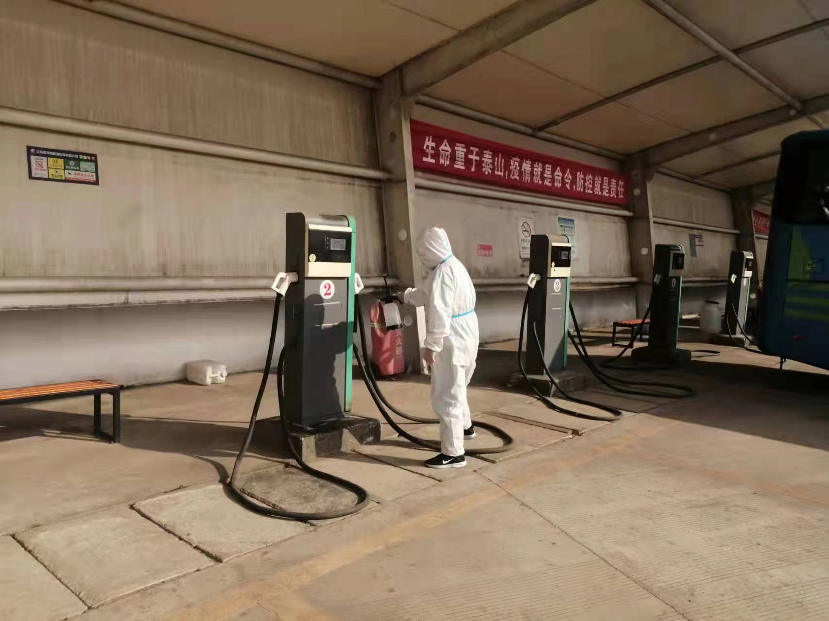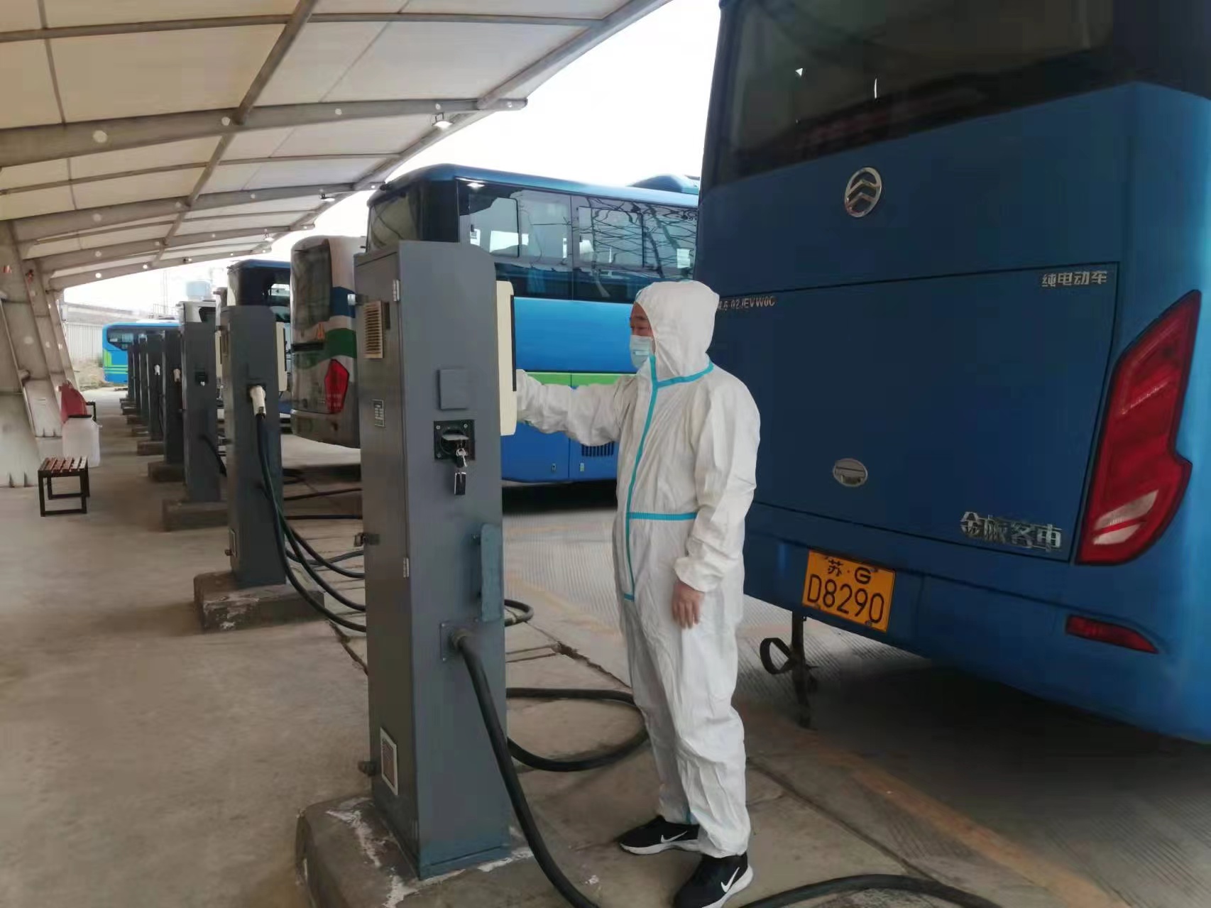 此外,运营管理部还加强了充电场站的消杀工作,安排一线场站责任人进行核酸检查以及消杀登记,为一线员工配备消毒液、酒精、喷雾、一次性手套、口罩等防疫物资,按照突发新冠肺炎疫情应急处置指挥部交通管控组要求,积极配合做好公共交通运输应急保障工作,确保疫情防控各项规章制度落实到位。