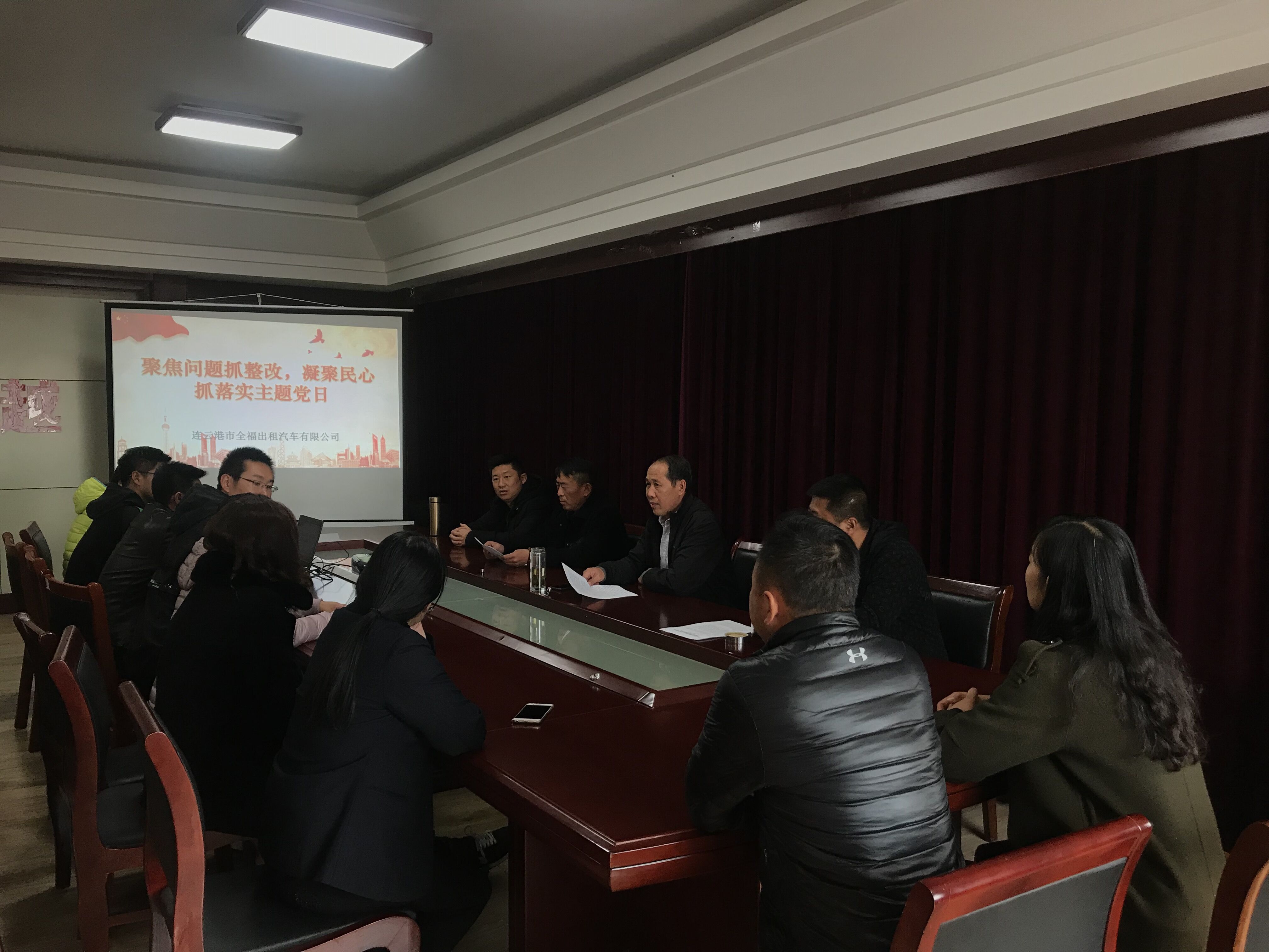 根据市委“不忘初心、牢记使命”主题教育领导小组办公室及汽服党委统一部署,11月25日上午,全福千亿官方站网站登录入口党支部在千亿官方站网站登录入口三楼会议室开展不忘初心、牢记使命“聚焦问题抓整改,凝聚民心抓落实”主题党日活动。
