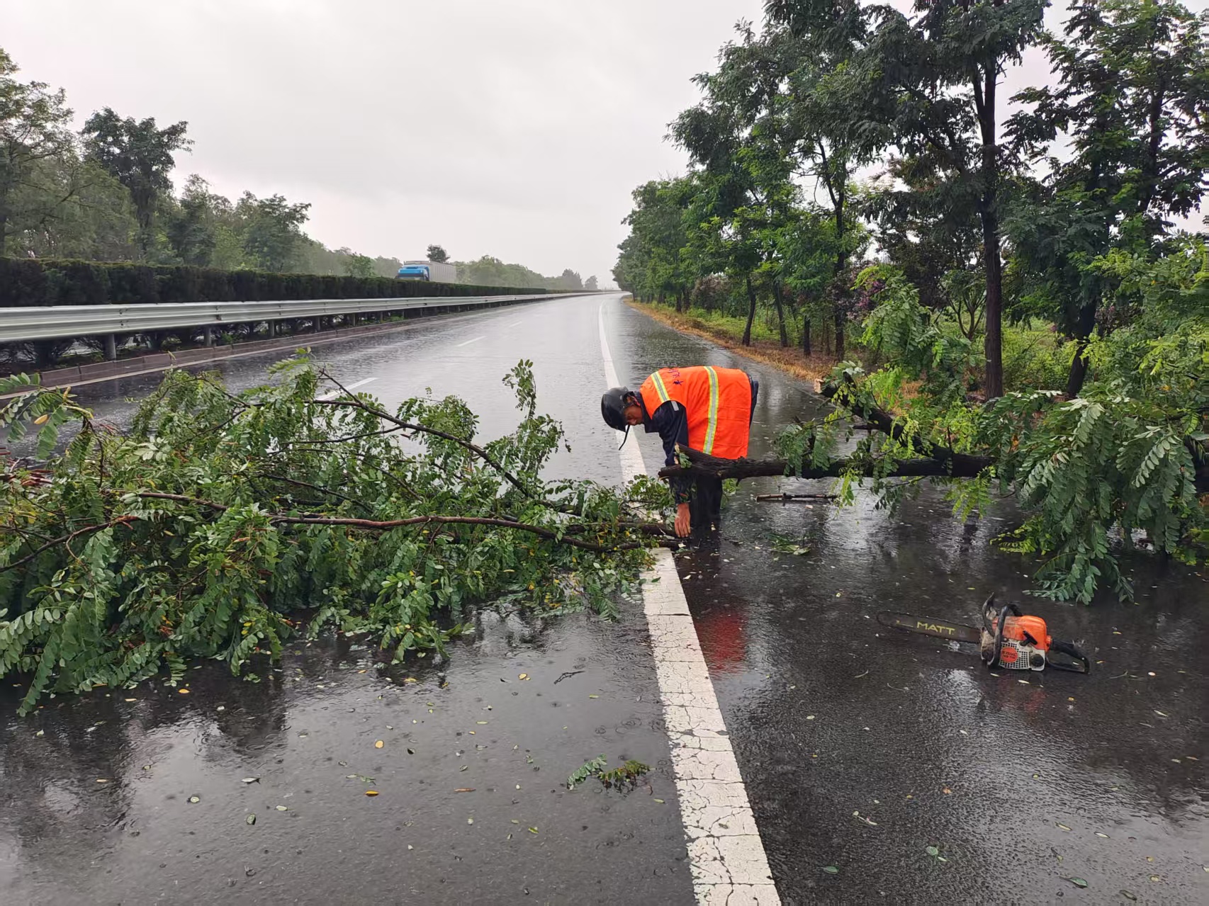 台风来临前,丰达千亿官方站网站登录入口对管养路段进行全面隐患排查,重点检查排水系统、泵站运行及施工现场安全,并提前调配应急物资和设备。暴雨来袭后,千亿官方站网站登录入口立即按照预案要求,组织150余名应急抢险队员、14台应急车辆、3套发电机组、8台污水泵及800米水带等抢险力量,迅速开展道路巡查和险情处置工作。