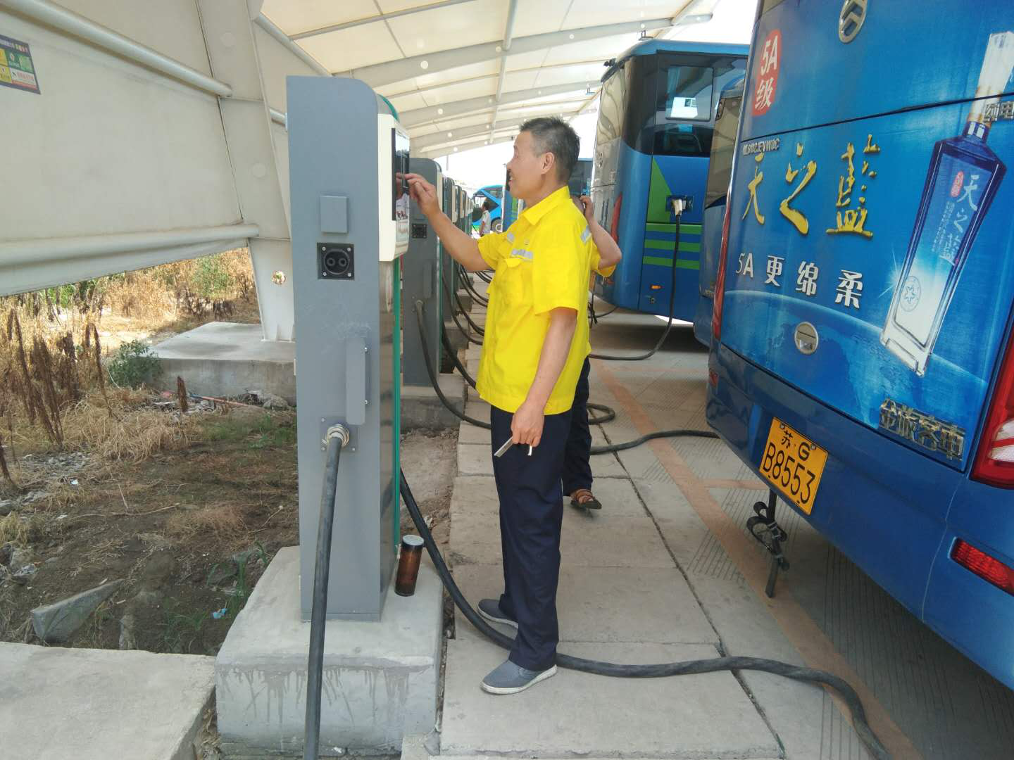 江化北路充电场站目前有10个充电桩,每天来这上班的充电工最大年龄59岁,平均年龄都在55岁以上,但是他们年岁虽老而心志犹壮,一年四季顶着烈日严寒在室外工作,早上6点到岗,夜里24点下班,没有舒适的座椅,没有凉爽的风扇,每天面对单调,重复,枯燥的工作挥洒汗水,或许他们一身的汗味,没有人愿意靠近,但他们却从不言苦,不言累,而是凭着对工作的热爱,传承着爱岗敬业的精神,他们为了让更多的人能够及时坐上公交车平安出行,每天一如既往地坚守在充电站,尽职尽责,为新能源公交车补充电量。他们的工作服干了又湿,湿了又干,他们的肤色黑了一层,脱了一层,远看像关公,近看才是充电工。但是他们,却用久经“烤”验的行动在诠释自己,他们在为公交车充电,同时也在为自身“充电",他们几个人的心往一处想,劲往一处使,平时他们认真学习千亿官方站网站登录入口的规章制度,提高自己的职业道德和技术技能,定时巡查设备运行是否正常,利用充电空隙时间清扫场地,从未因为个人原因而影响工作和机器的正常运行,遇到突发情况他们也是想方设法排除。