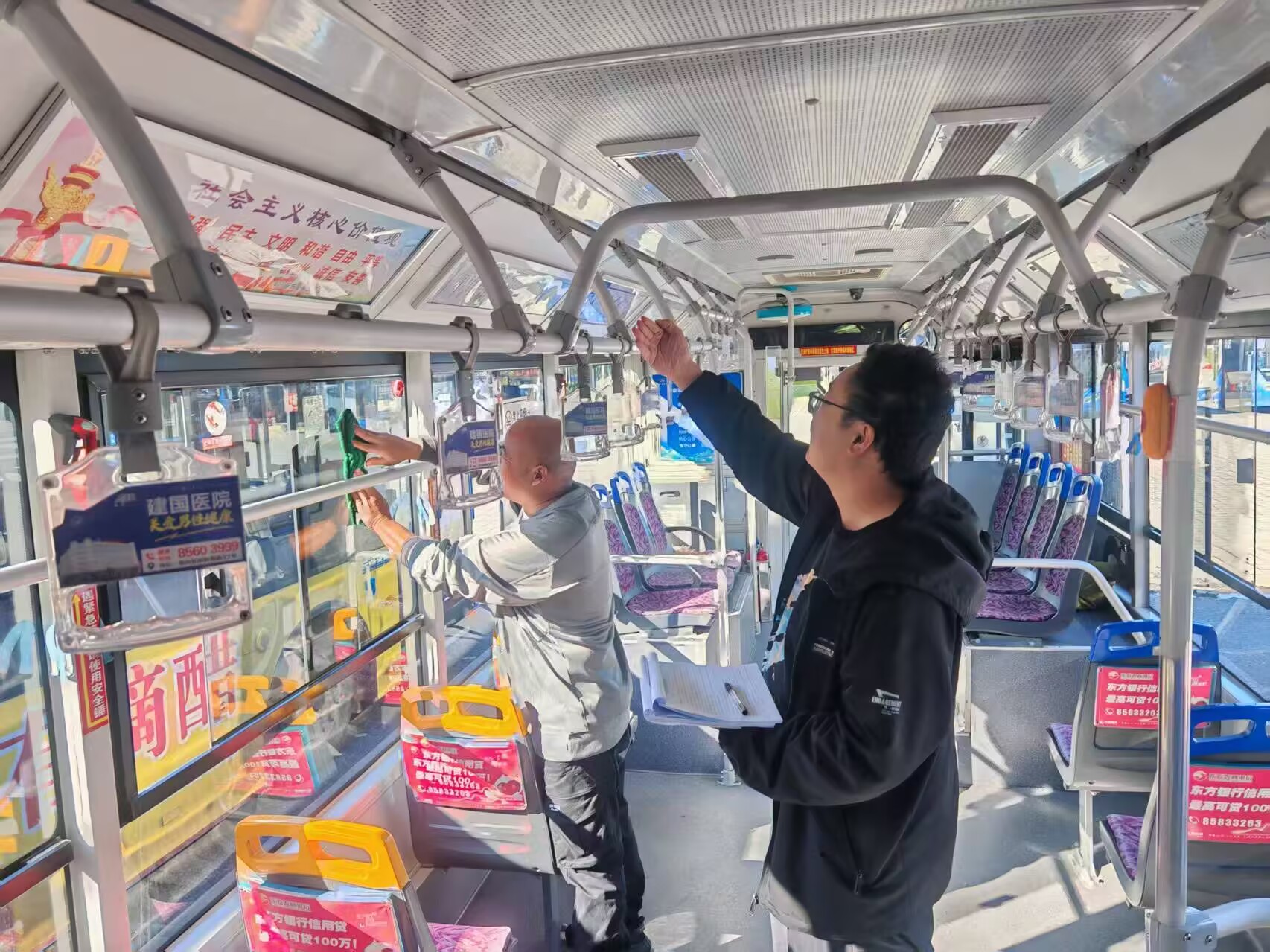 本次检查坚持“全面覆盖、不留死角”的原则,重点核查车容车貌、车身及车窗清洁度,以及车厢内座椅、扶手、地板等关键部位的卫生状况。检查组还关注垃圾桶清理情况、通风设施畅通性、车内标识完好度,以及扶手、投币机等高频接触区域的清洁消毒是否达标。