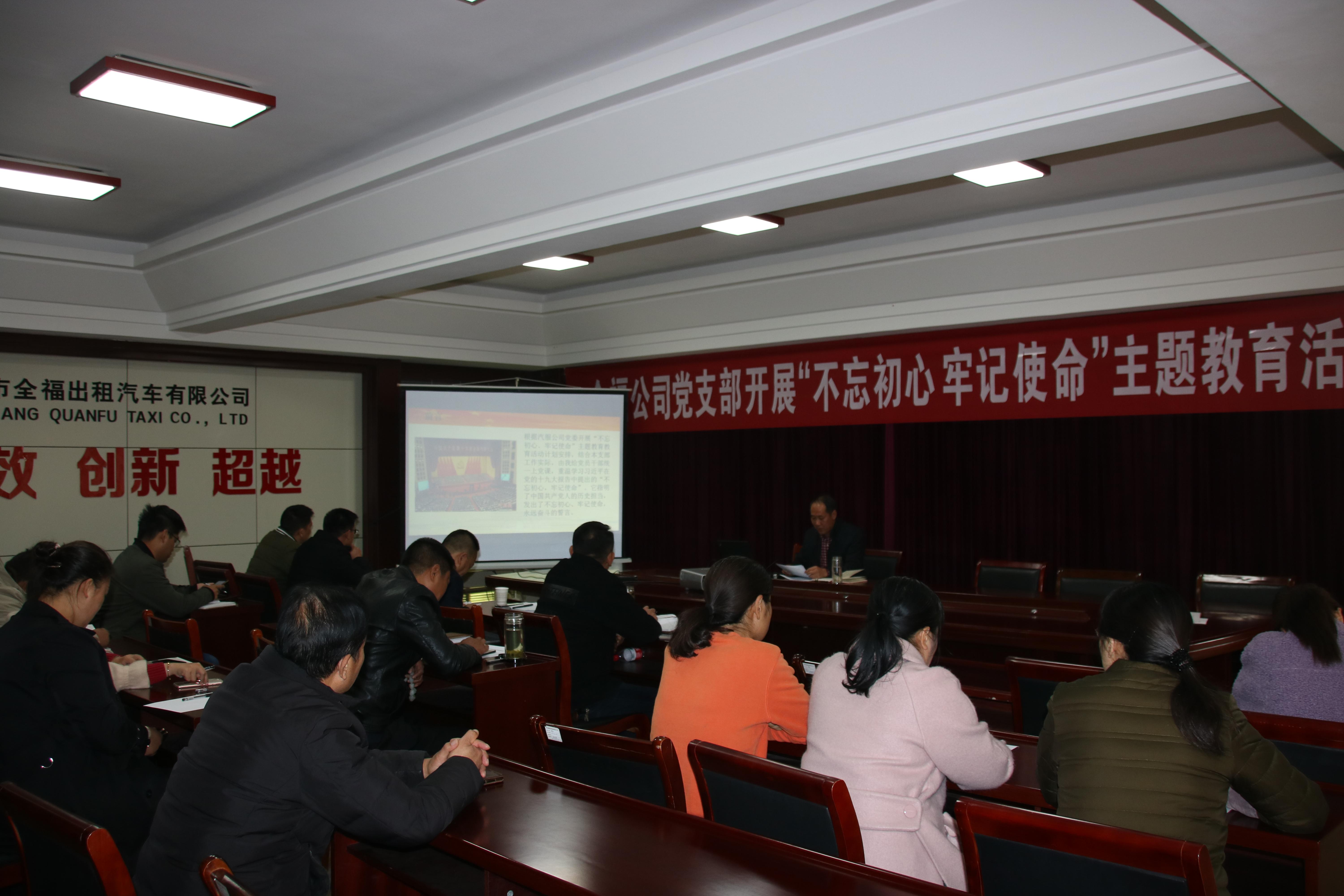 为贯彻落实汽服党委开展“不忘初心、牢记使命”主题教育活动安排,全福千亿官方站网站登录入口党支部结合工作实际,于11月12日上午在千亿官方站网站登录入口三楼会议室召开由党支部书记“守初心、担使命做新时代有责任、有担当为企业发展的推动者”主题党课。