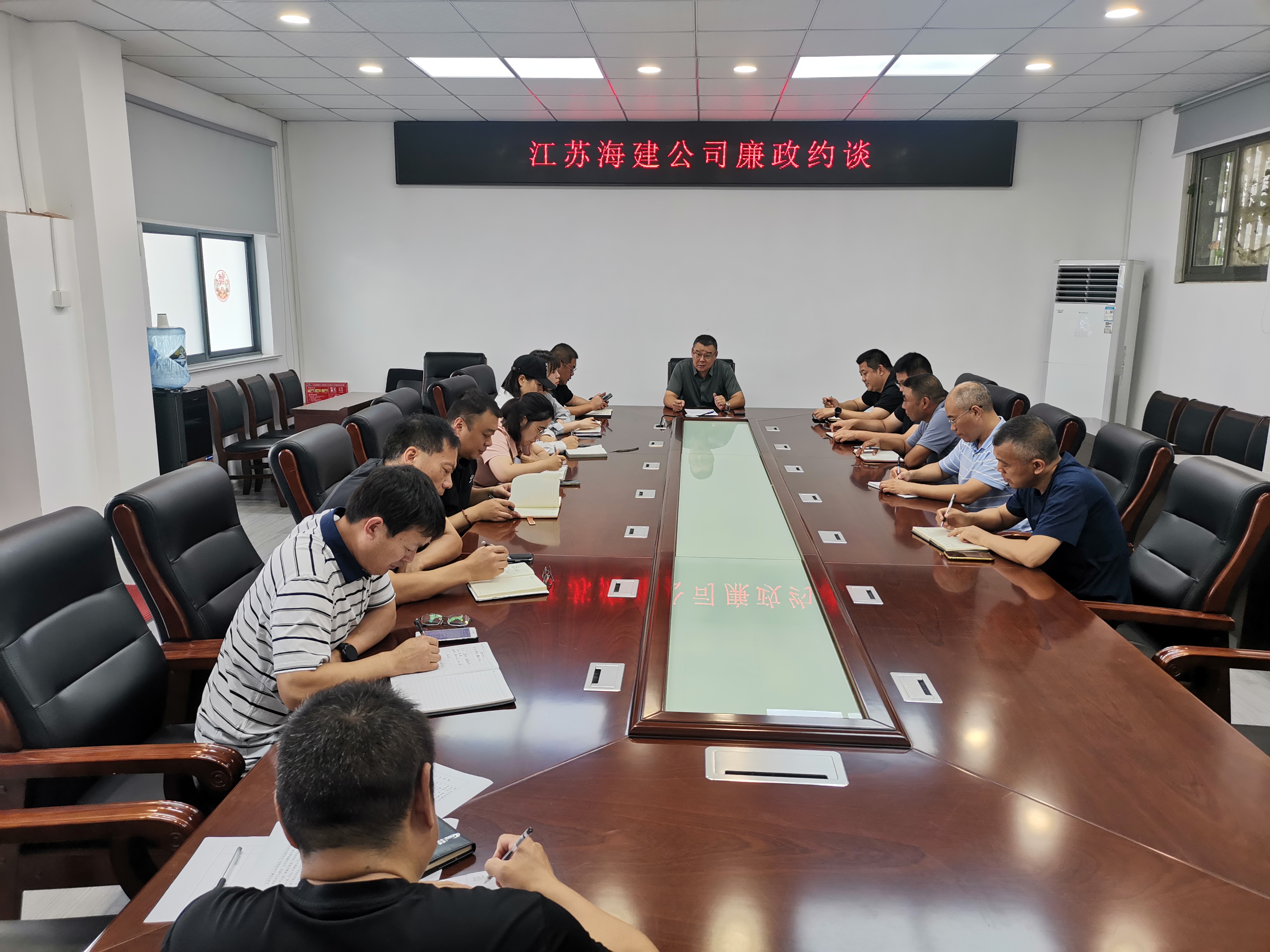 中秋国庆双节将至,为深入贯彻落实中央八项规定精神,推动党纪学习教育走深走实,进一步教育引导广大党员干部筑牢拒腐防变思想防线,切实提高政治站位,筑牢节日期间廉政“防火墙”,近日,海建千亿官方站网站登录入口组织开展中秋、国庆节前集体廉政谈话,千亿官方站网站登录入口党委书记于振国约谈班子成员,千亿官方站网站登录入口领导班子成员及各分子千亿官方站网站登录入口领导按分工分别对分管单位及部门负责人分级开展节前廉政谈话。