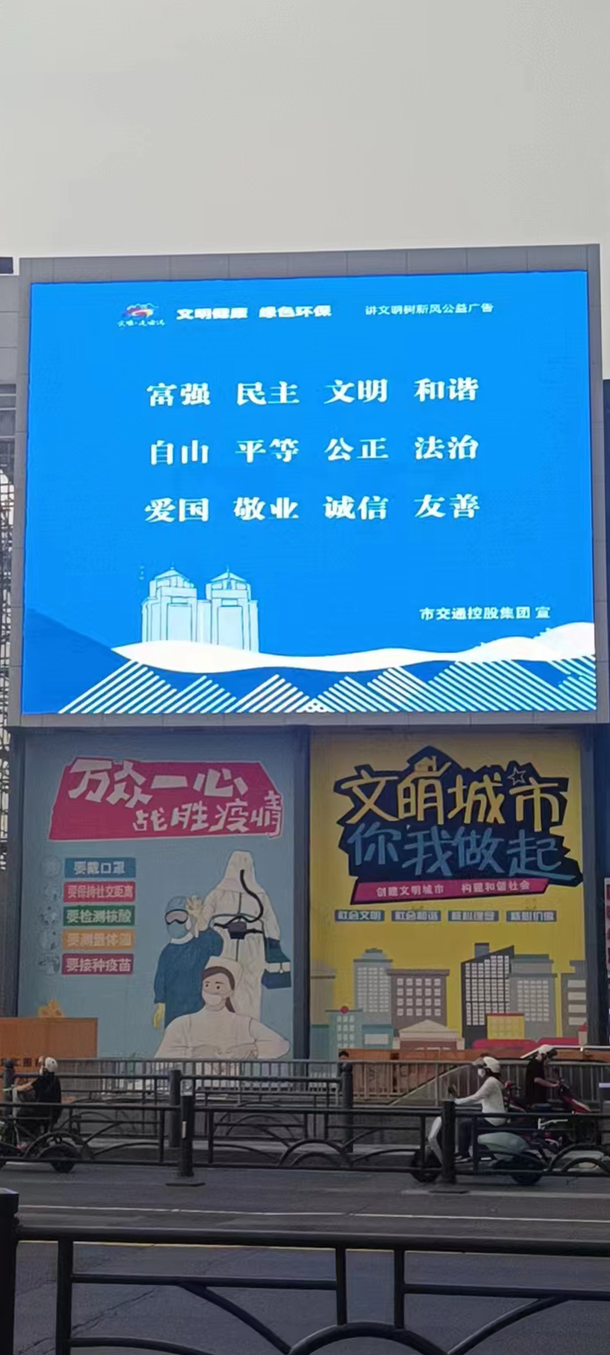 更换后的高清LED显示屏高10.9米,宽11.2米,为P14彩色显示屏,使用高清播放系统,颜色数可达10.7亿色,刷新率最高可达4800Hz,灰度最高可达65536级,可有效减小色差。与原显示屏相比,新屏具有高亮度、大角度、抗紫外线、抗静电等特点。自8月18日更换完成后,该大屏不间断更换我市“创建文明典范城市”公益宣传画面,以更加优质的硬件描绘城市人文、和谐、文明的风景线,为广大市民积极参与文明城市建设营造浓厚氛围。