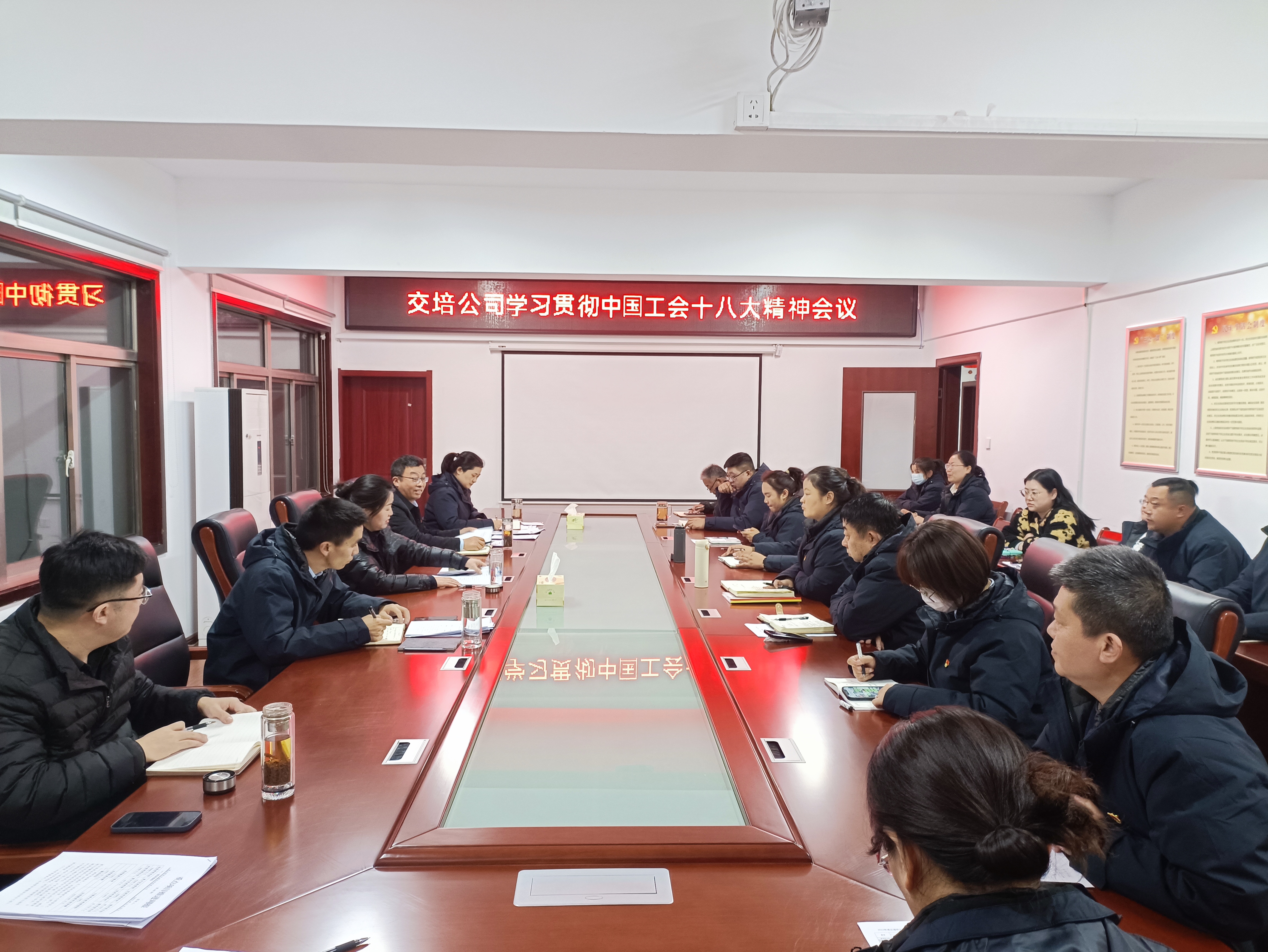 11月29日,交培千亿官方站网站登录入口召开学习贯彻中国工会第十八次全国代表大会精神会议,会议由纪委书记、工会主席陈志文主持,千亿官方站网站登录入口中层干部和职工代表参加。