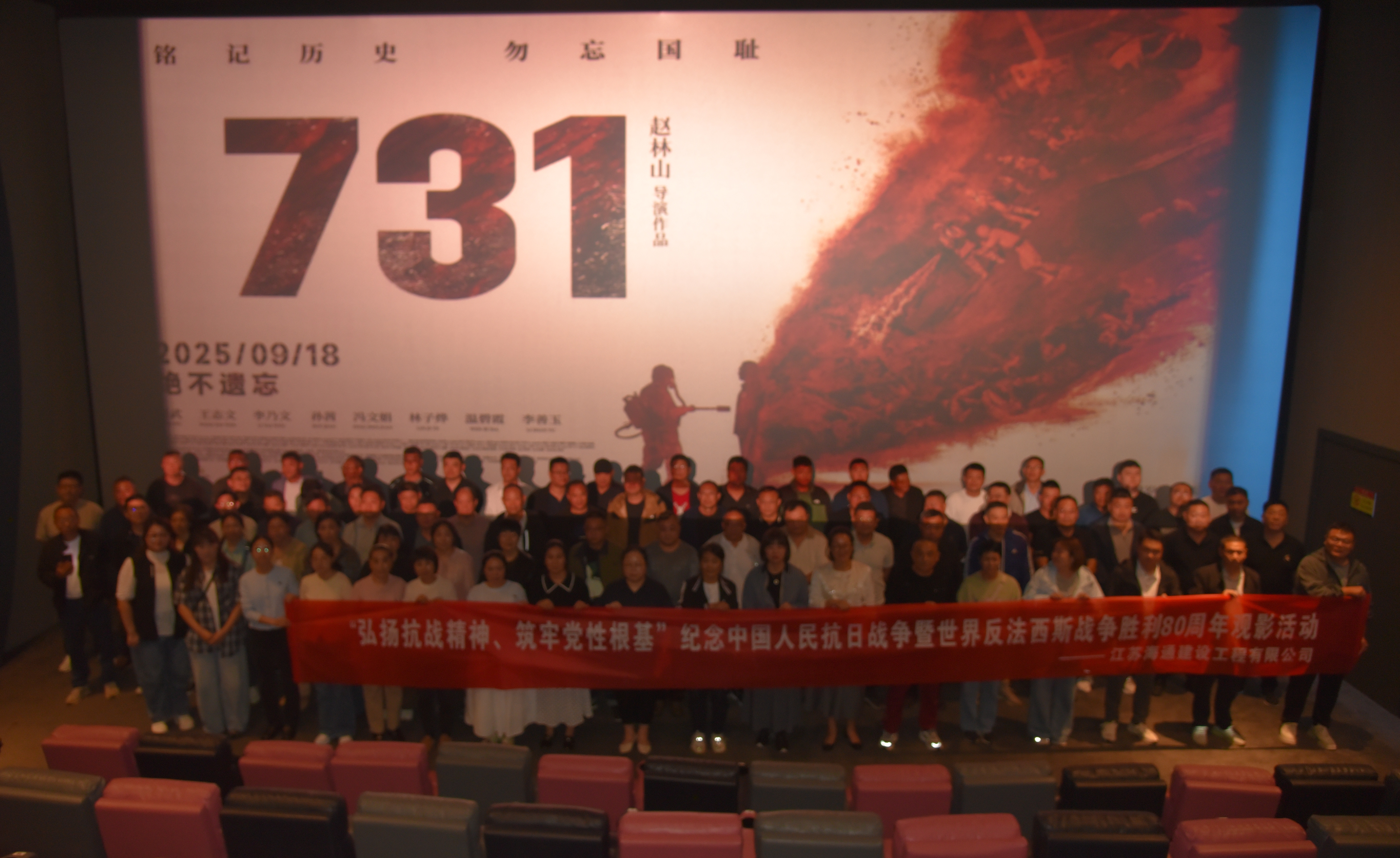 为深入学习贯彻习近平新时代中国特色社会主义思想,弘扬伟大抗战精神,激发党员干部及群众的爱国热情与奋斗精神,近日,海建千亿官方站网站登录入口组织开展纪念中国人民抗日战争暨世界反法西斯战争胜利80周年观影活动。110余名党员、入党积极分子及群众代表共同观看了历史题材电影《731》,在光影中重温历史,筑牢党性根基。