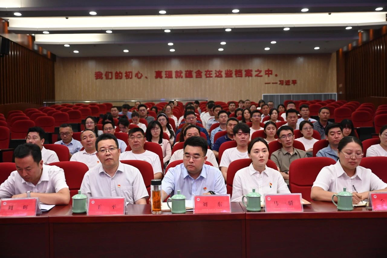 在庆祝中国共产党成立104周年之际,7月1日,明茂千亿官方站网站登录入口在连云港市档案馆组织开展弘扬“人民楷模”精神 凝聚“后发先至”力量专题党课活动,以学习楷模精神、强化使命担当的实际行动向党的生日献礼。千亿官方站网站登录入口党总支委员、总经理刘东主持活动,领导班子成员及千亿官方站网站登录入口各部门、权属单位职工参加学习,通过沉浸式党课汲取榜样力量,激发干事创业热情。