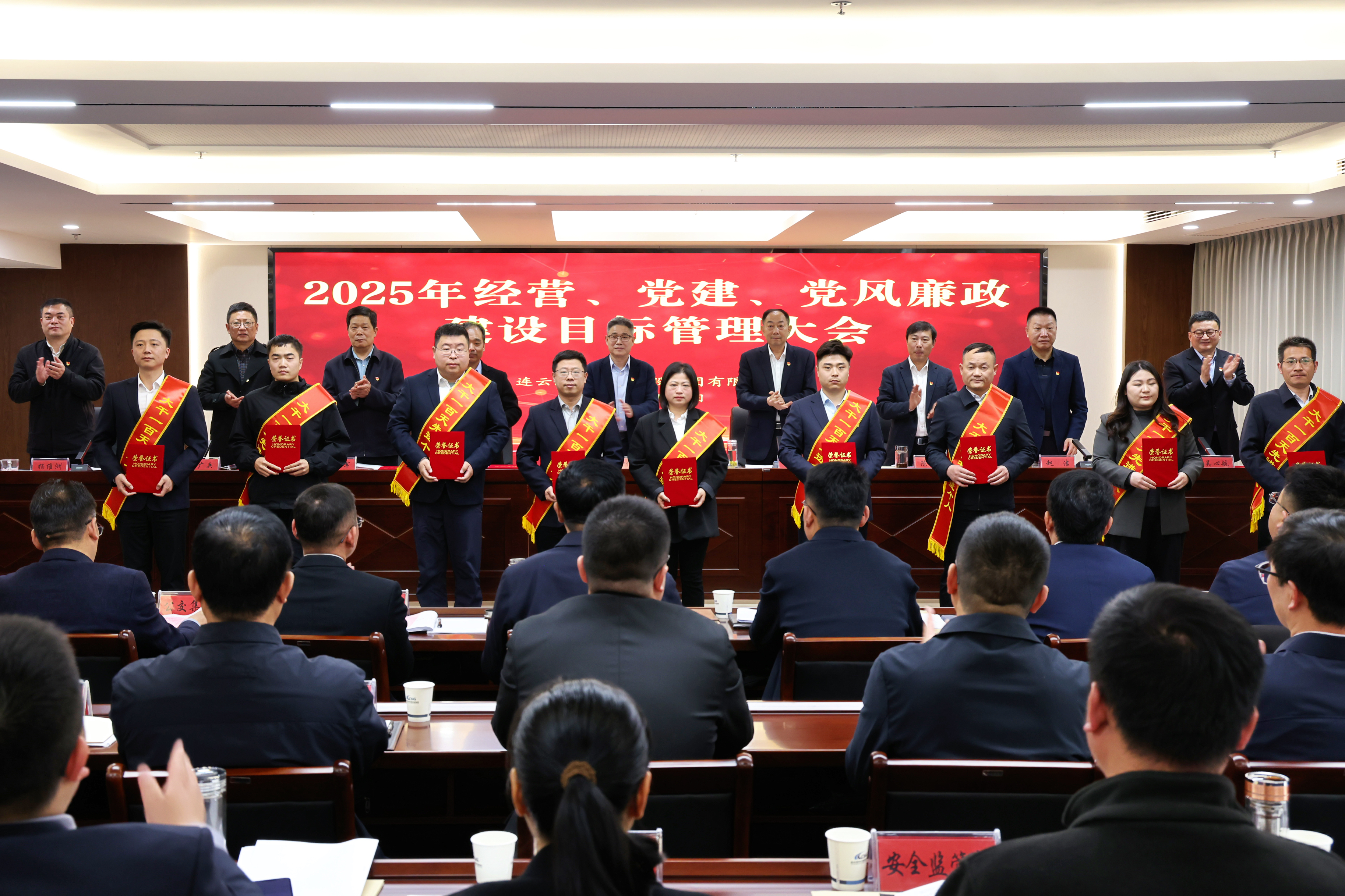 4月12日,千亿(中国)召开2025年经营、党建、党风廉政建设目标管理大会,全面总结回顾2024年工作,安排部署2025年工作。千亿(中国)党委书记、董事长仲伟涛出席会议并讲话,千亿(中国)总经理孙中华主持会议。千亿(中国)领导班子成员、市纪委监委派驻第二十一组成员、二级权属企业党政主要领导及分管党务、经营工作领导、千亿(中国)各部门主要负责人、部分三级权属企业负责人、优秀经营管理者代表、大干一百天先进个人代表、信息宣传工作先进个人代表共90余人参加了会议。