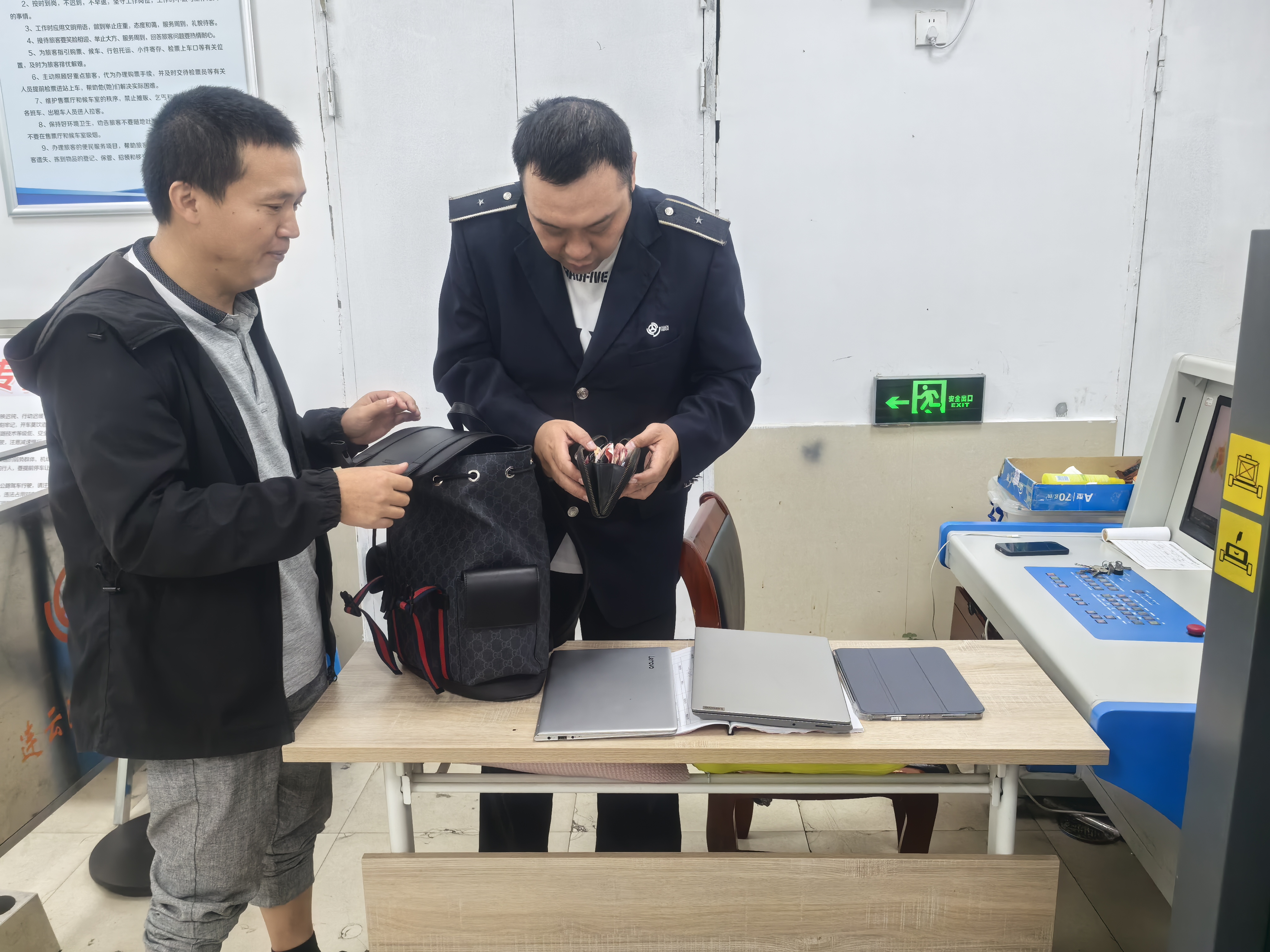 拉开拉链检查时,张念兵心里“咯噔”一下:包里整整齐齐放着三部笔记本电脑,还有个鼓啷啷的钱包,打开数了数,现金有2000多元。“这么贵重的物品遗落了,失主肯定急坏了!”他没多想,拿起背包快步往总站“雷锋车”服务台跑去。服务台值班人员接过背包,两人一起核对了物品清单,特意记下电脑的品牌型号和现金数额,方便后续核实。