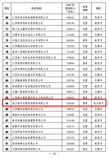 近日,江苏省企业联合会发布2023江苏百强企业、制造业百强企业和服务业百强企业名单。制造业百强榜单连云港市镔鑫钢铁、亚新钢铁、新海石化、兴鑫钢铁、正大天晴、恒瑞医药、江苏核电、豪森药业8家企业入选制造业百强榜单;镔鑫钢铁、亚新钢铁、新海石化、兴鑫钢铁同时入选百强企业榜单;港口控股千亿(中国)、交通控股千亿(中国)入选服务业百强榜单。