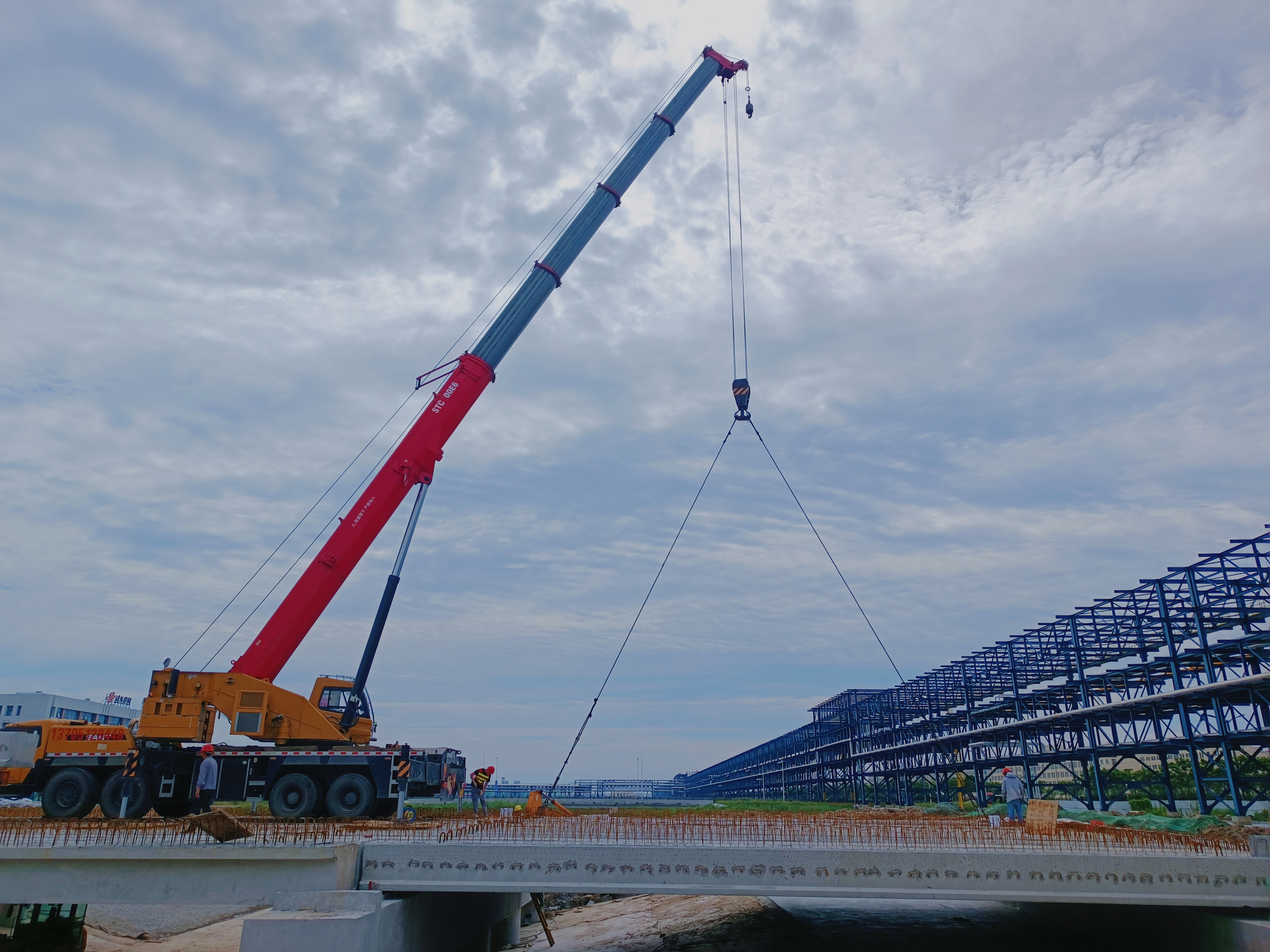 自桥梁吊装以来,江苏海建通仁分千亿官方站网站登录入口预制厂本着"保安全,抓质量"的原则,根据制定的吊装施工方案,在确保每片桥梁一次性吊装到位的同时,不断加强安全防范措施,确保安全施工零事故,大大提高了桥梁吊装的精确度及吊装的施工进度。