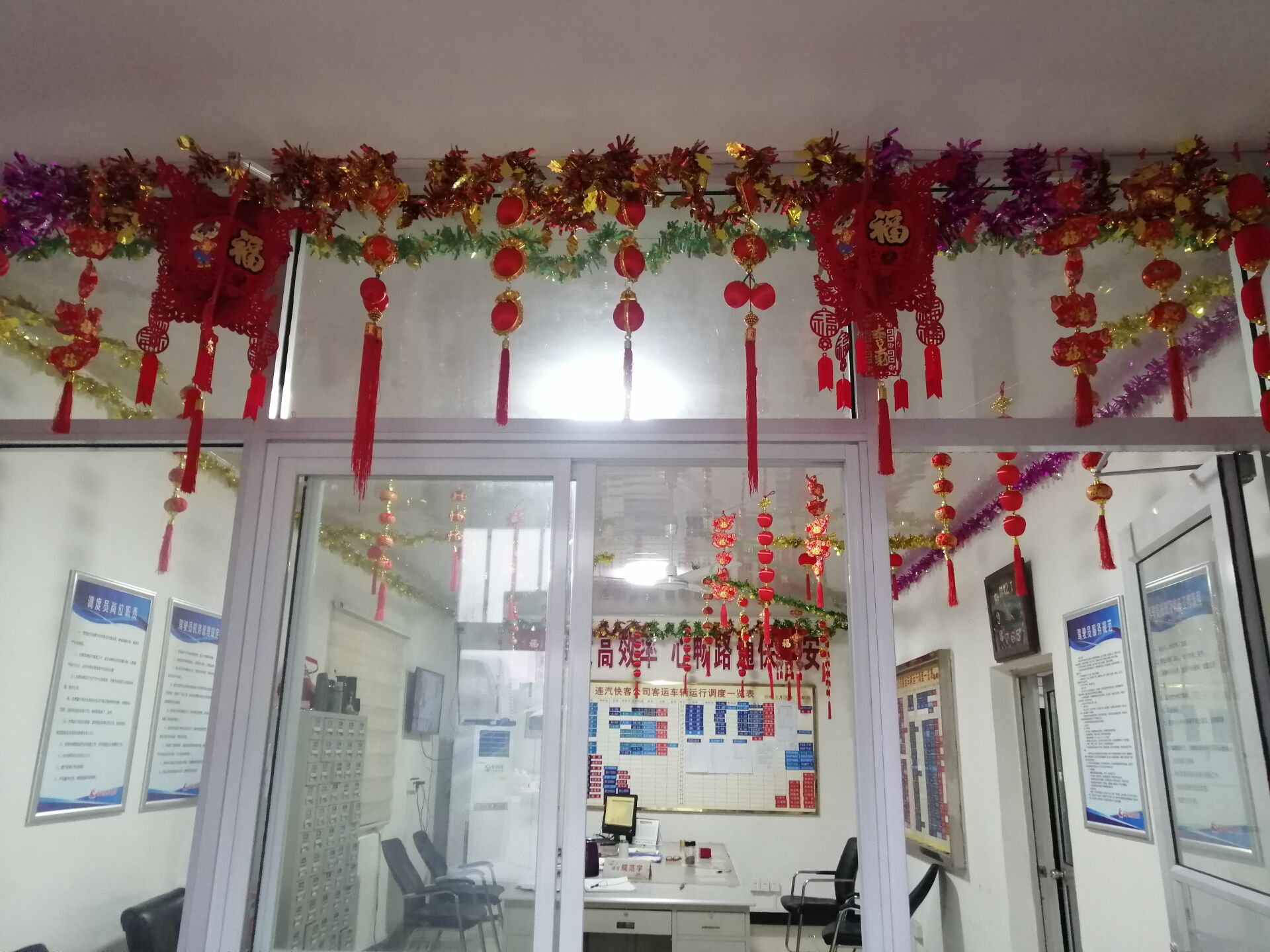 春节将至,为营造深厚的新春氛围,以崭新的面貌喜迎新的一年,快客千亿官方站网站登录入口于1月22日上午在运调中心及驾驶员休息室大门两侧挂起了国旗,火红的大灯笼也高高挂起。在运调中心办公区域悬挂起一个个火红的小灯笼和“福”字,在办公楼区域贴起了“喜迎八方来客平安一路、满载五湖春意幸福一生”,横批“贺新禧”的对联,积极营造温馨祥和“家”的氛围,让整个运调中心和办公区域年味十足,通过这些喜庆的形式来迎接新春的到来。